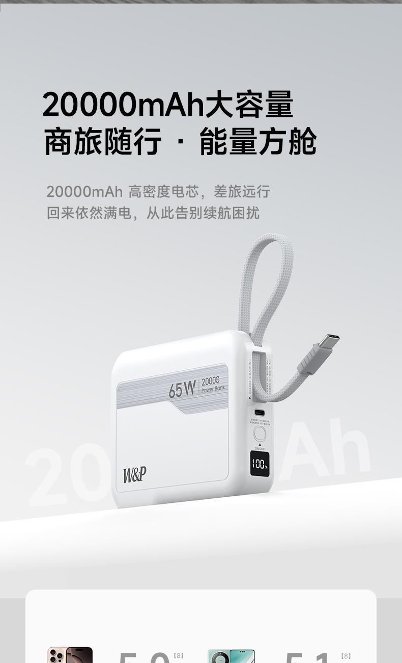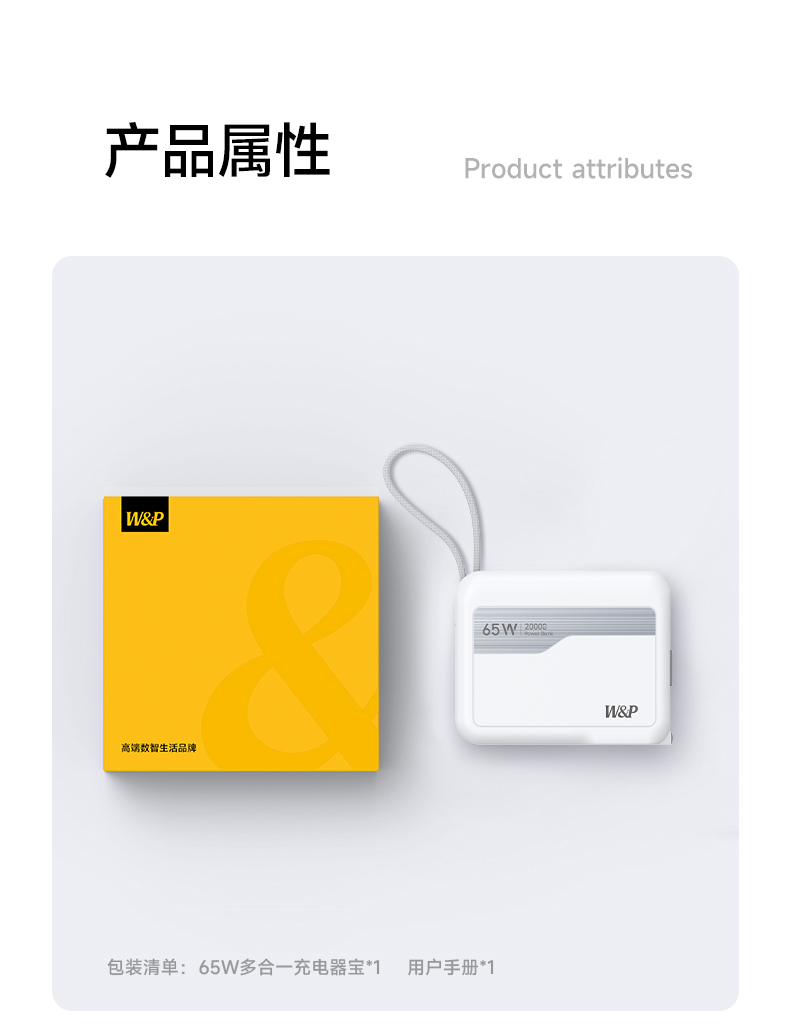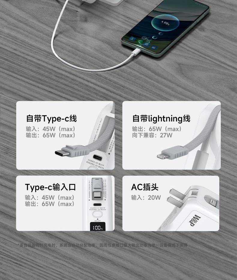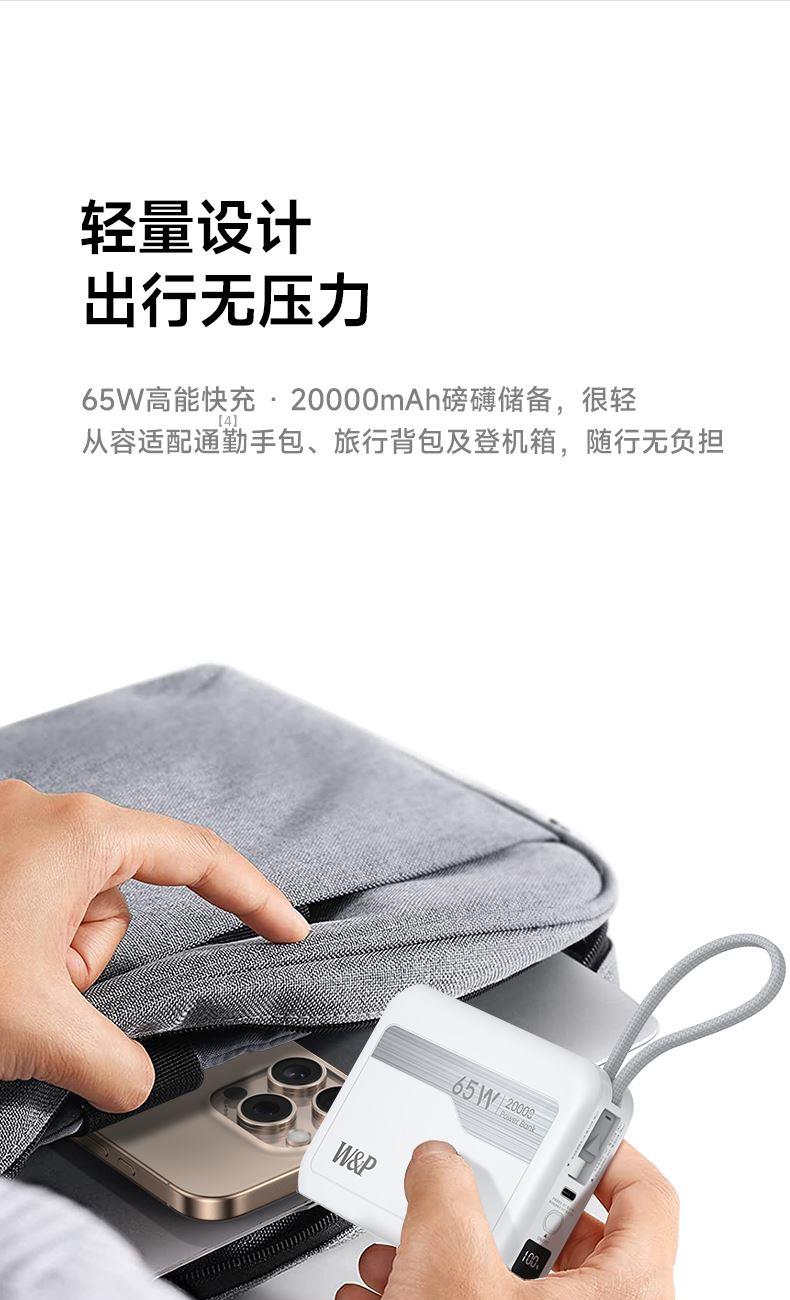 W&P充电宝两万65W多合一适配器移动电源CSD65WAC