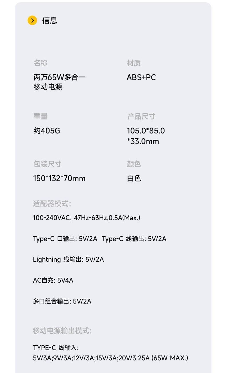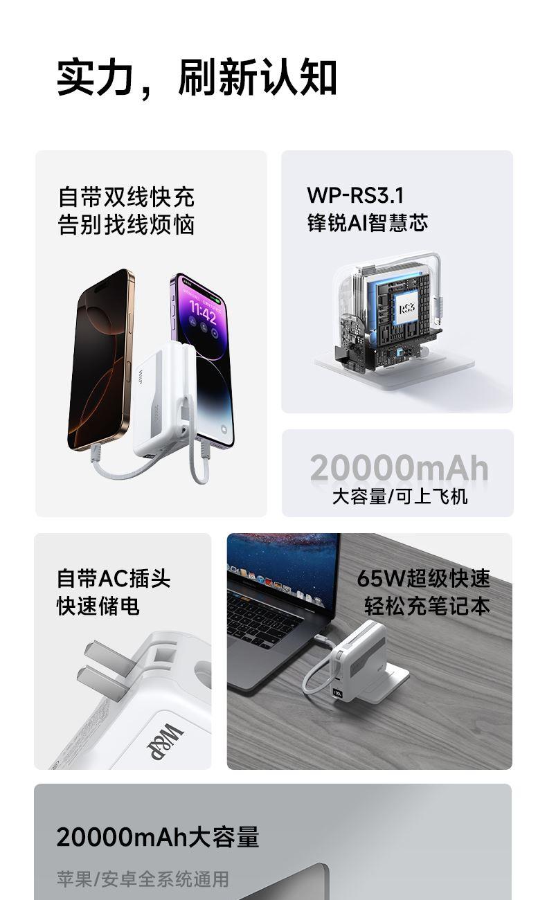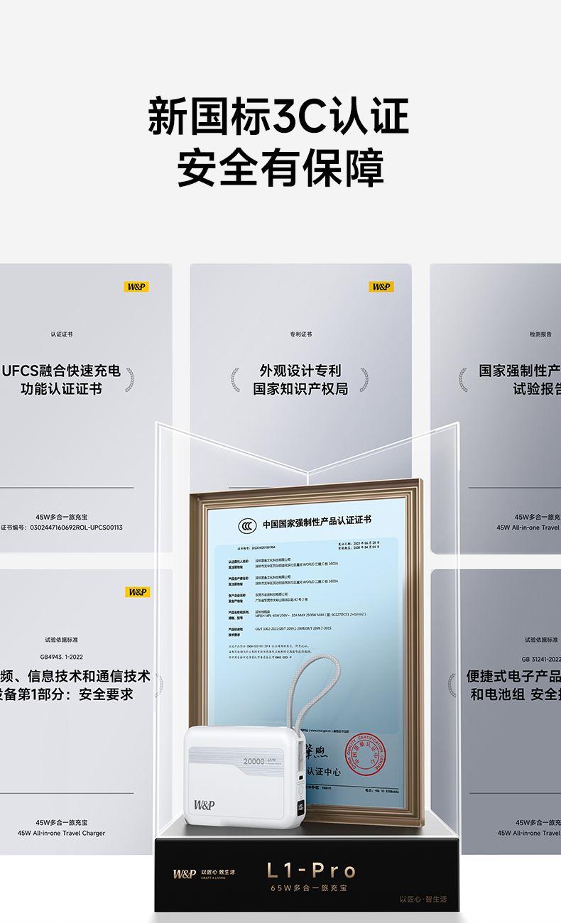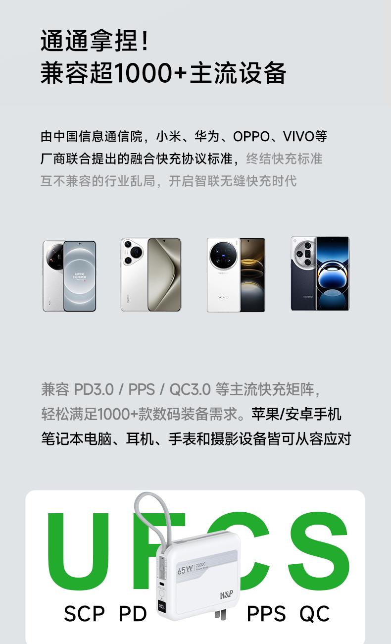W&P充电宝两万65W多合一适配器移动电源CSD65WAC