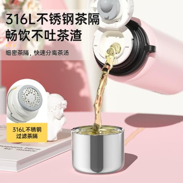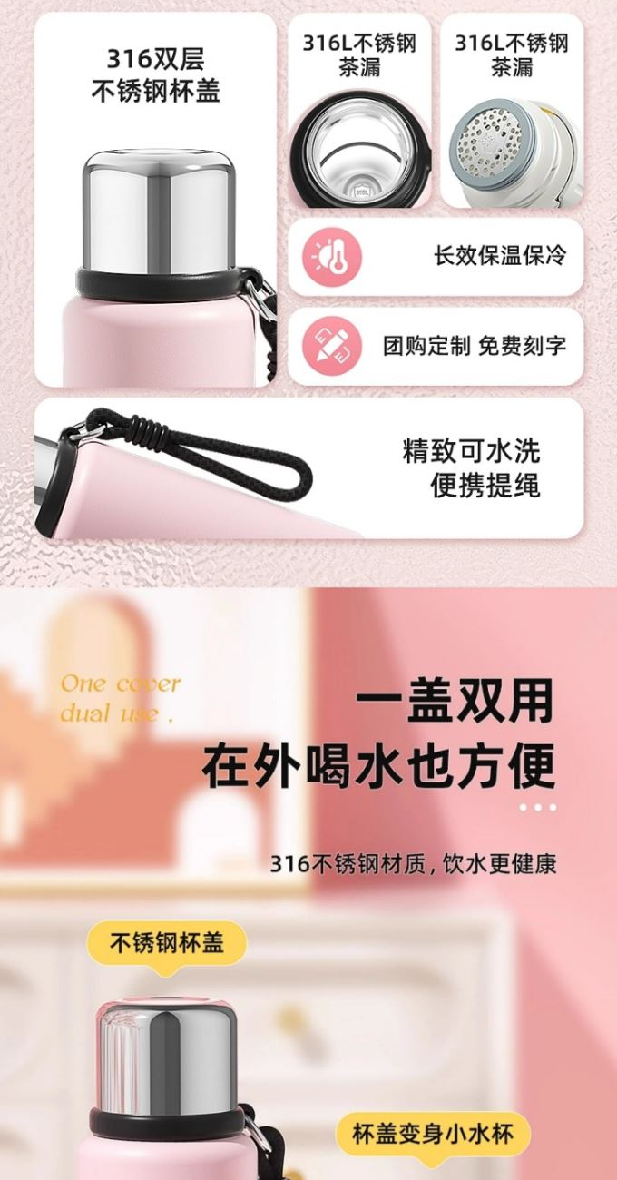 尺寸:82*220mm 颜色:酷黑绿 甜酷粉 栀子白 材质:316L奥氏体不锈钢内胆、食品级PP,PC配件。 316L不锈钢滤网快速分离茶汤。全钢杯盖双层健康防烫。 静音底垫稳固不到。 精致便携提绳,出行方便,舒适不勒手。 包装:单瓦盒