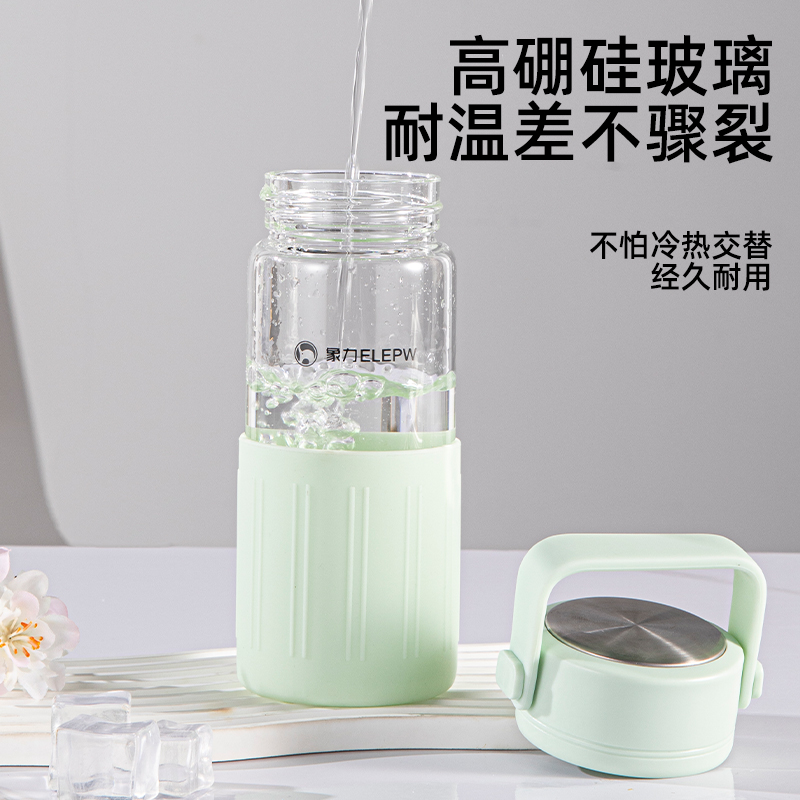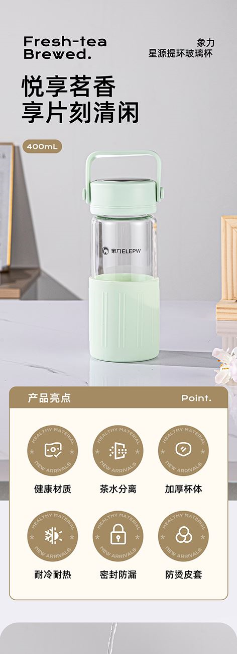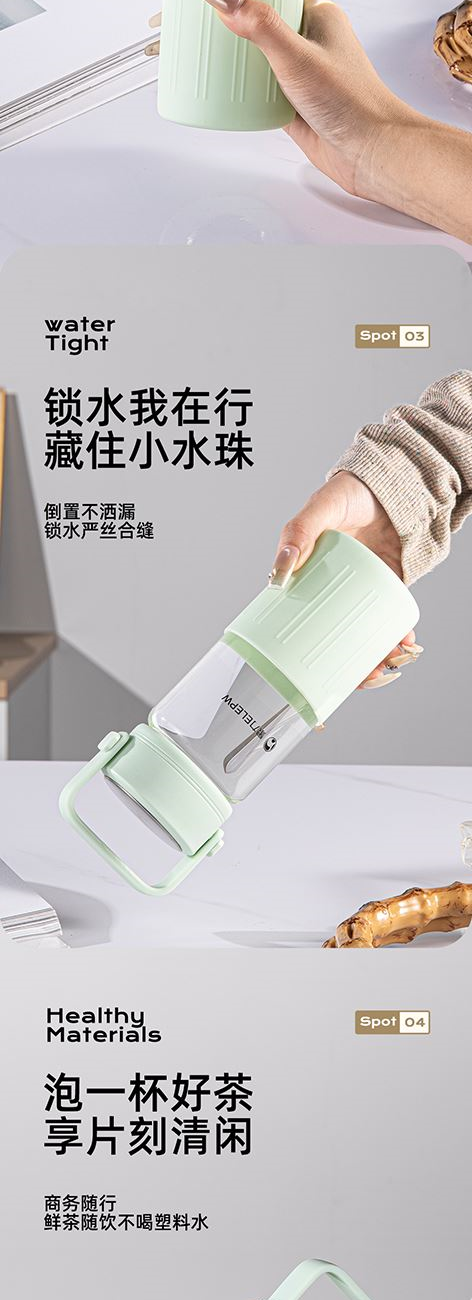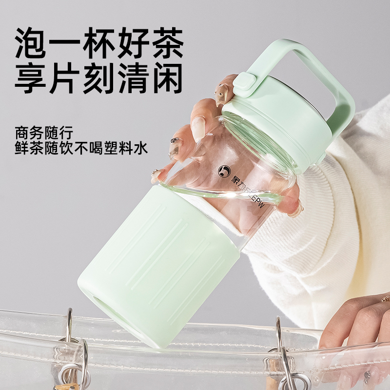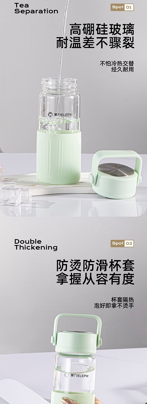 304不锈钢材质顶盖,304不锈钢滤网材质。 高硼硅玻璃杯,超大容量,便携提手,方便泡饮。 轻便小巧,携带方便。 杯身防烫硅胶,拿握从容有度。 包装:单瓦盒