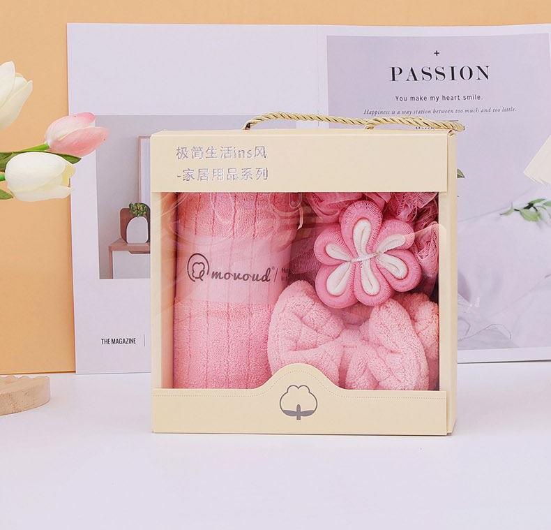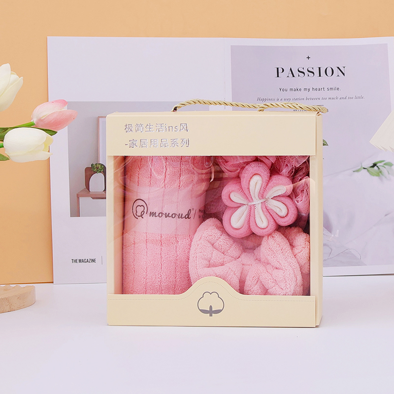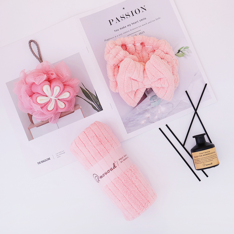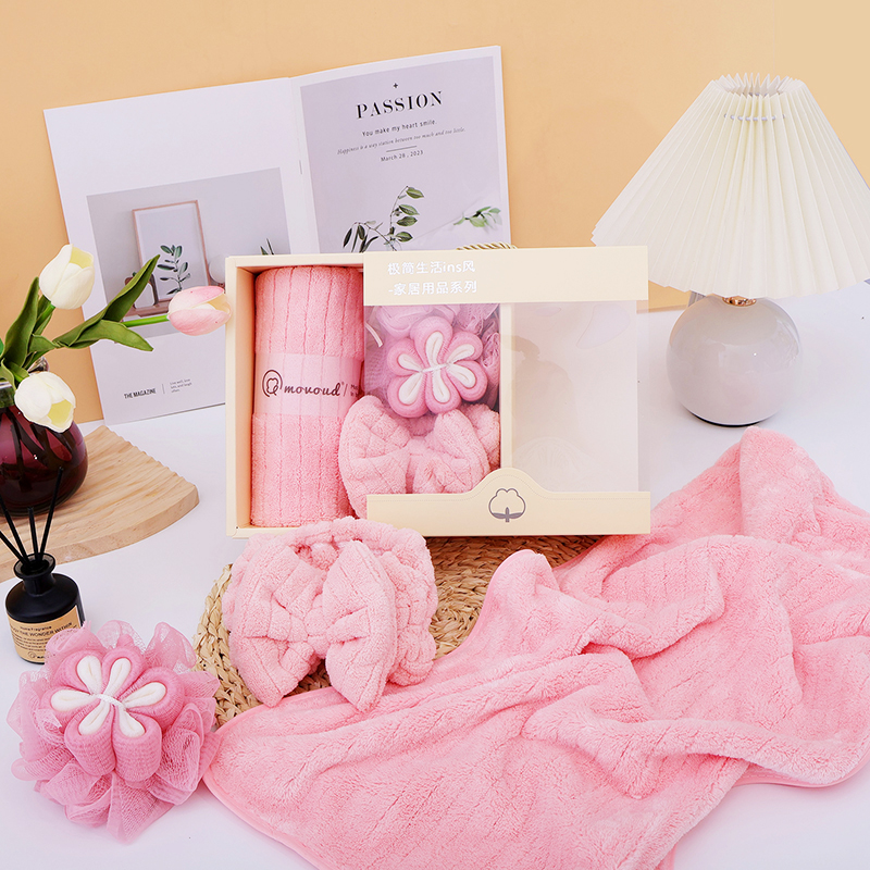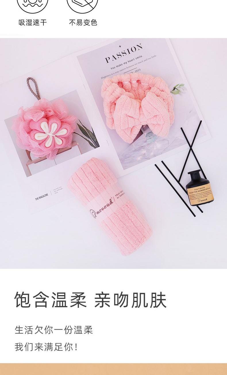规格:毛巾*1条,束发带*1条,浴花*1个 尺寸: 毛巾:35*75CM 面料:珊瑚绒+聚酯纤维 包装方式:礼盒装 包装尺寸: 200*200*9mm 质地细腻、手感柔软、不易掉毛、不起球、不掉色,对皮肤无任何刺激,不过敏。外形美观,颜色丰富。