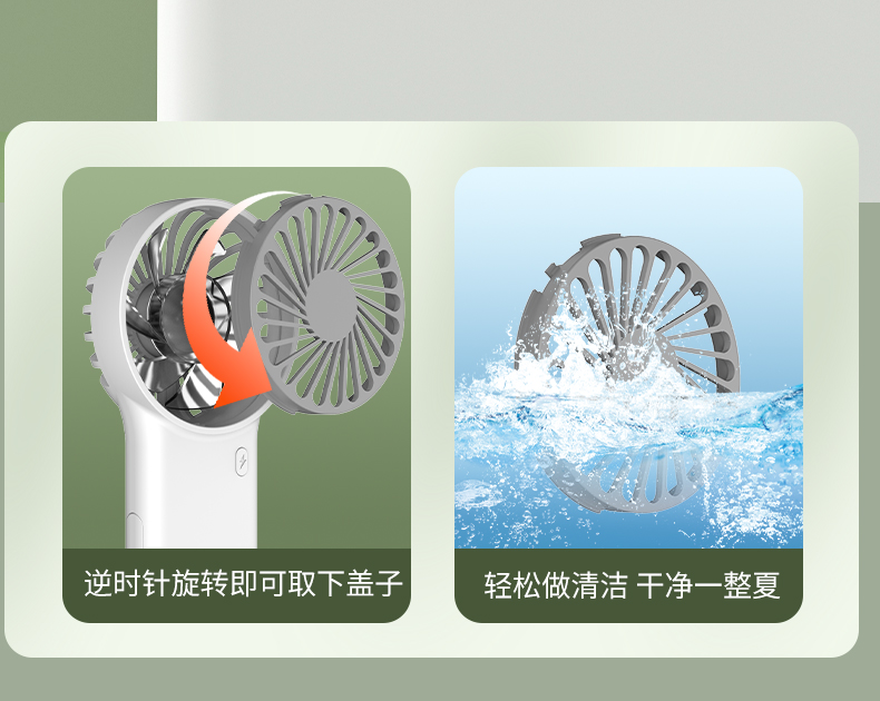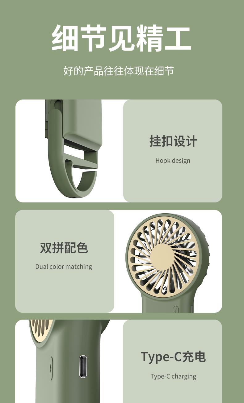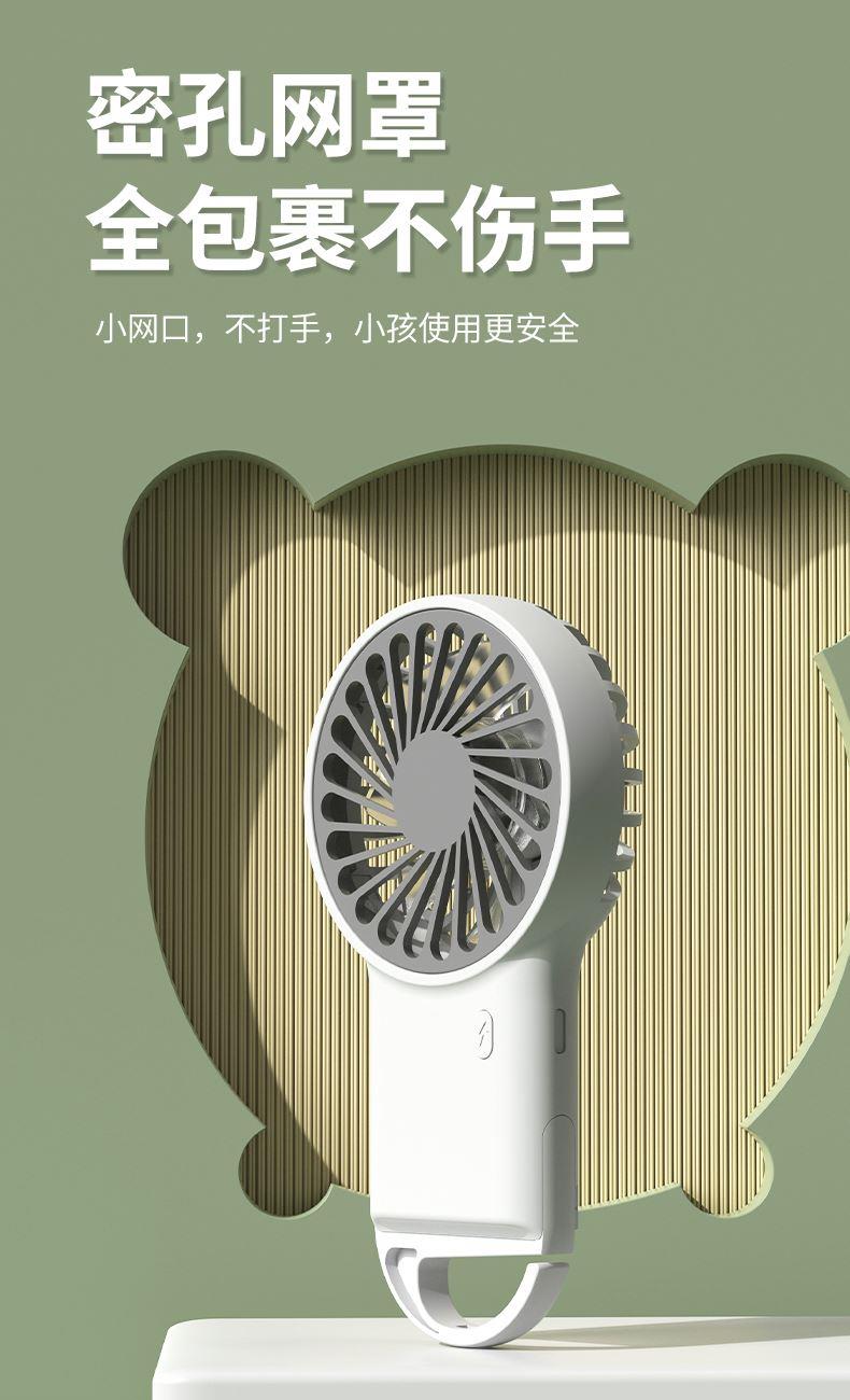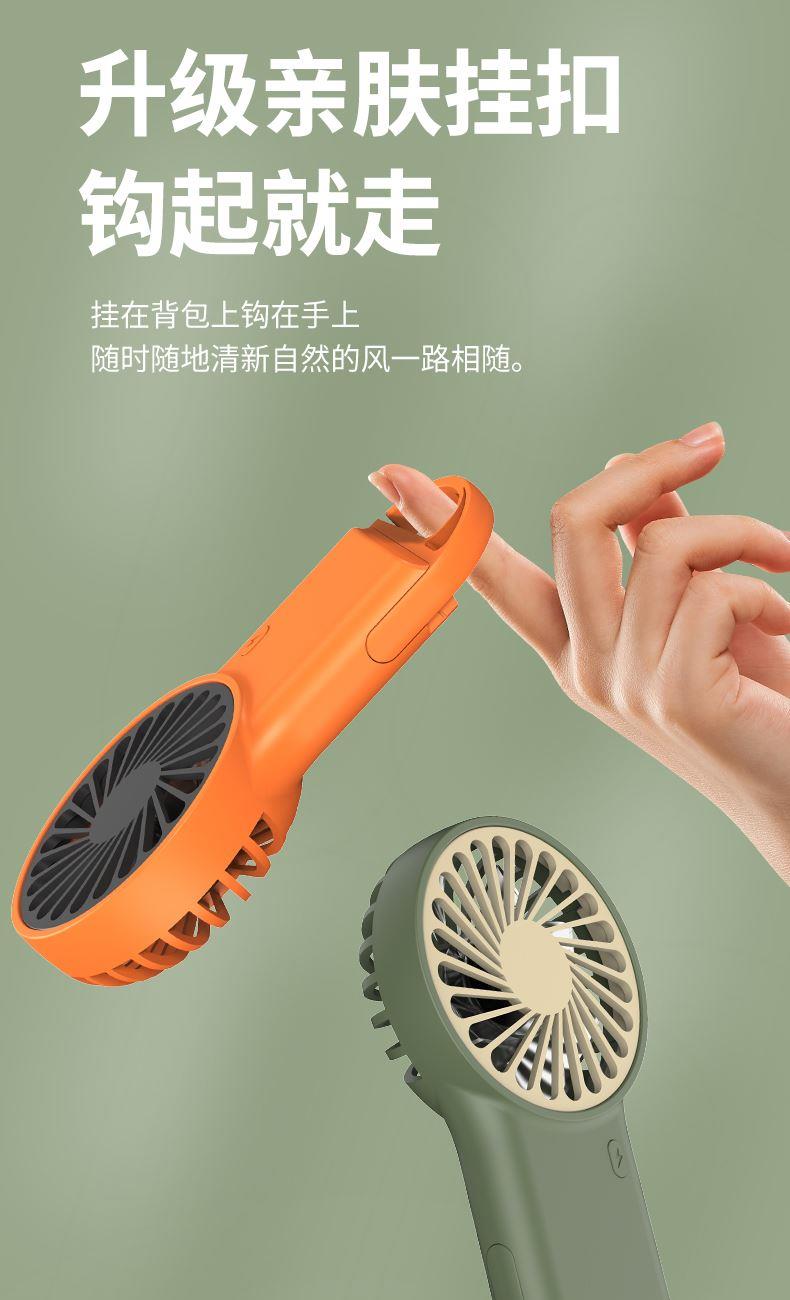 手持桌面户外小风扇Y17 颜色:白色 黄色 绿色 材质:ABS 尺寸:85*33*160mm 容量:600mAh 包装:彩盒包装 【推荐理由】: 精致小巧,方便携带 三档风速可调 桌面/手持 /自带挂钩多种使用方法