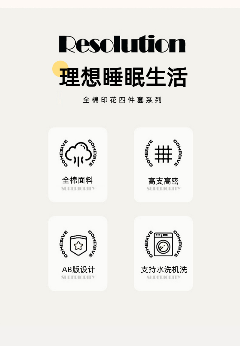 被套:200*230cm 床单:230*245cm 枕套:48*74cm*2 面料:全棉 执行标准:GB/T22796-2021 安全类别:GB18401-2010 B类 1.精选=优质全棉面料,以阳光般的天然柔润质感,打造会呼吸的睡眠体验。采用高支高密精梳工艺,触感柔软细腻却不失挺括,面料经纬交织间形成天然透气孔洞,睡眠时能自动调节湿度,保持肌肤整夜干爽舒适。