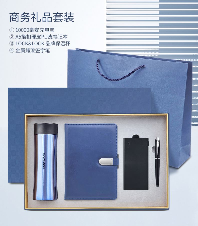 礼盒配置 : 型号:LHC4028 400ML LOCK&LOCK 保温杯,尺寸20.7X6.5cm A5搭扣硬皮PU皮笔记本 金属烤漆签字笔 全自动8骨三折伞 尺寸:280*56mm 包装盒尺寸:400x265x75mm 手提袋尺寸:410x292x85mm 箱重:约28kg/箱