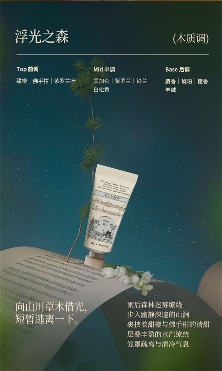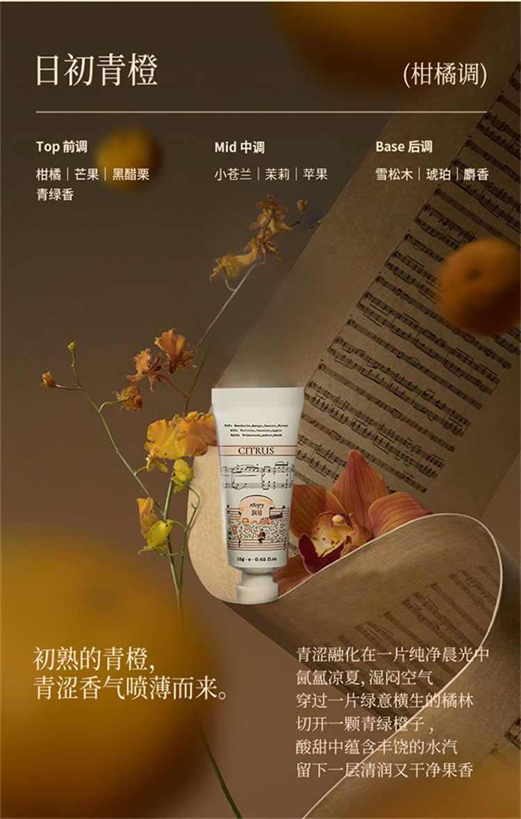 内含: 加州阳光12g*1 橘绿之泉12g*1 茶染长夜12g*1 融雪之时12g*1 檀香百合12g*1 暮色人间12g*1 六月蔷薇12g*1 雾入玫海12g*1 花蔓昼想12g*1 浮光之森12g*1 拂风茶语12g*1 日初青橙12g*1 12支礼盒装,补水护肤 适合自用送礼旅行携带方便