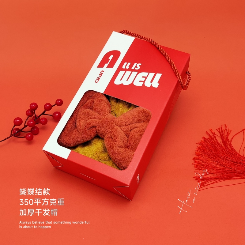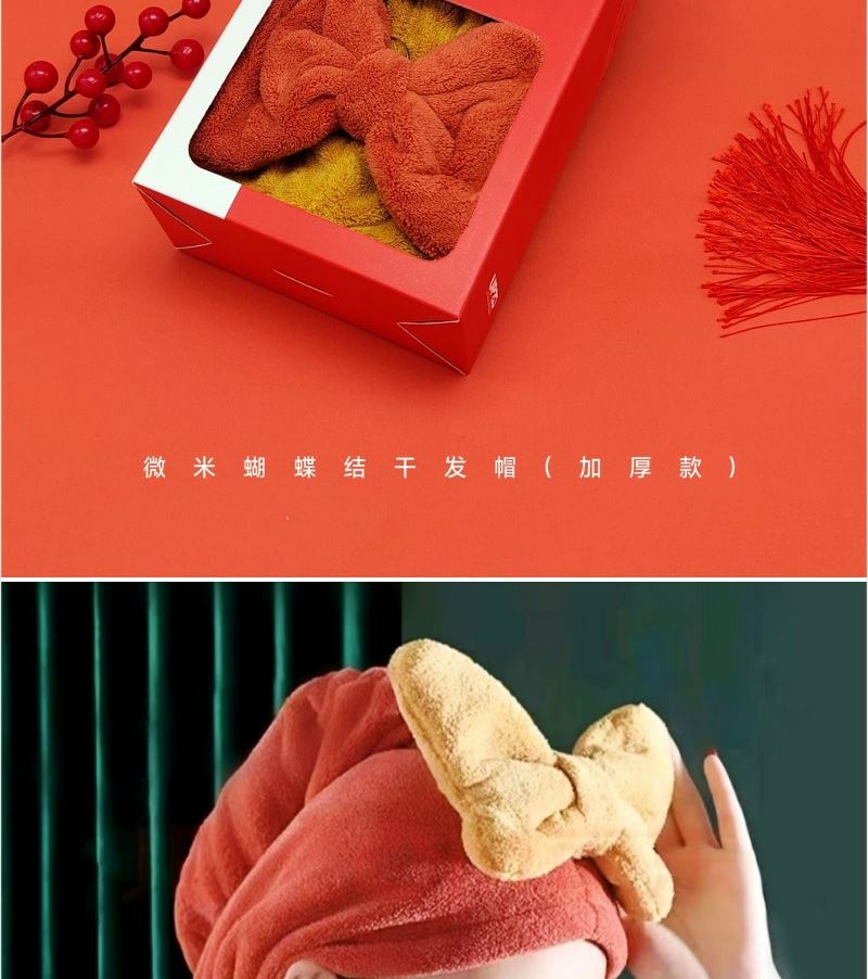 优品尚竹蝴蝶结加厚干发帽