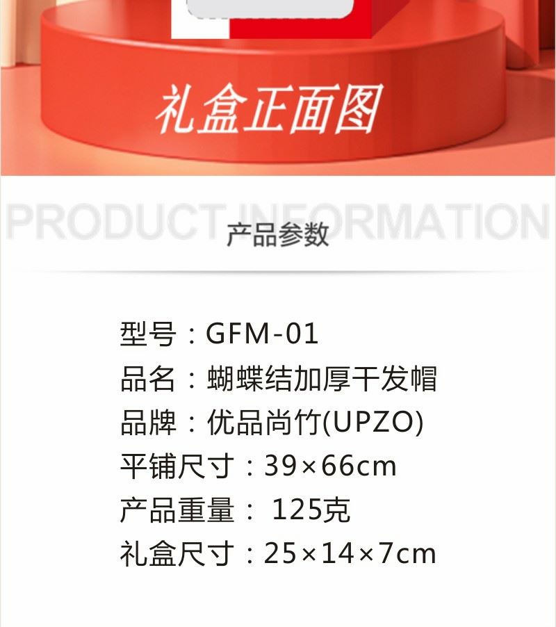 型号: GFM-01 成分:微米纱 平方克重:350克 干发帽克重:125克左右 平铺尺寸:39*66CM 高克重 高吸水性