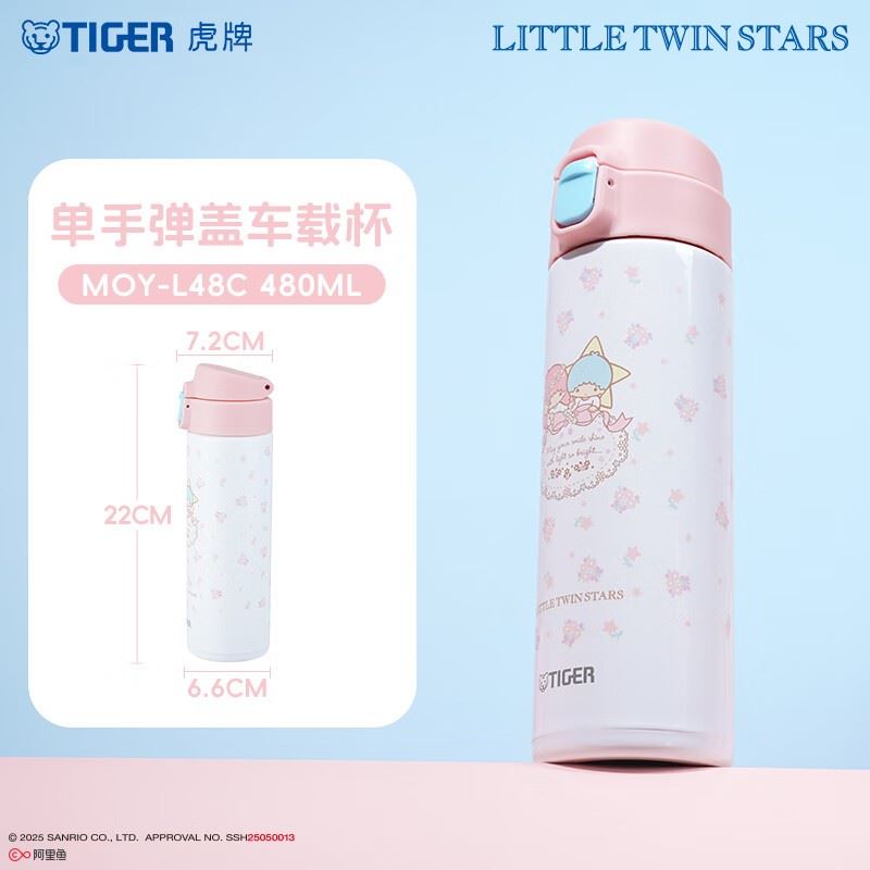 虎牌三丽鸥单手弹盖车载保温杯MOY-L48C480ml