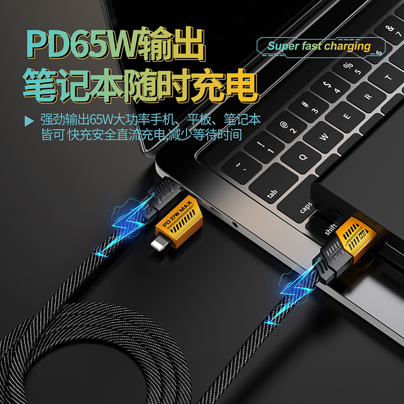 长 度:120cm 材 质:编织线+ABS 颜 色:黄色 接 口:苹果接口 Type-c接口 输出电流:5A 功 能:充电 产品净重:36g