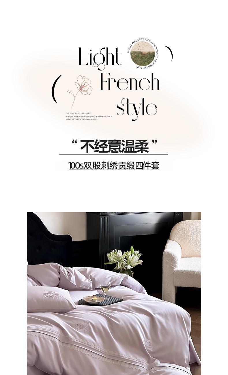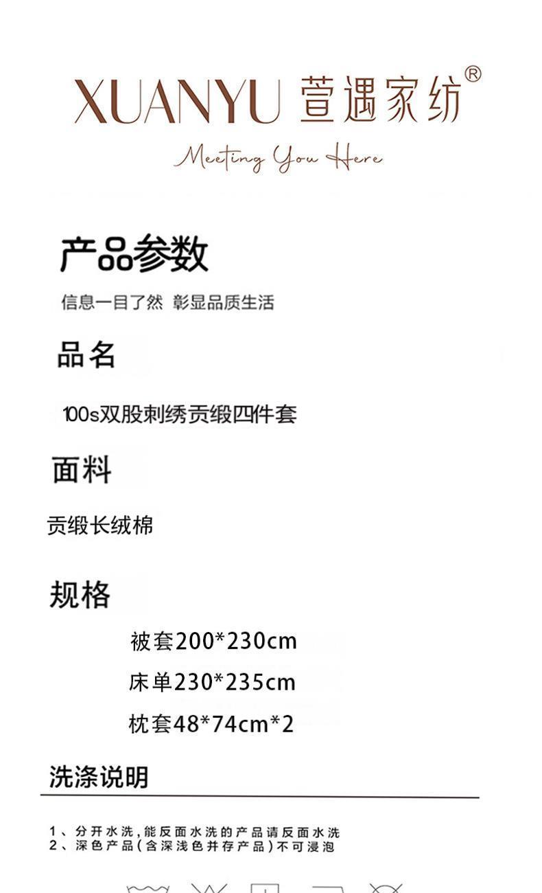萱遇家纺100s双股刺绣贡缎四件套X-T8018