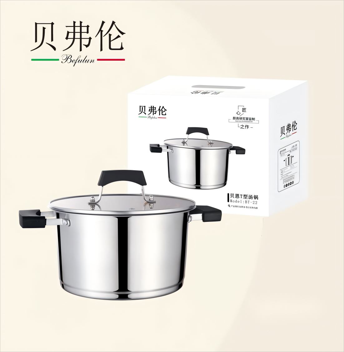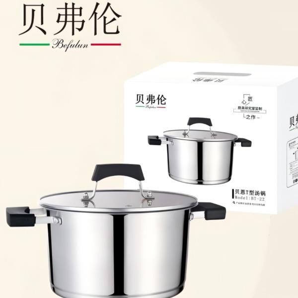 尺寸:22cm 材质:奥氏体不锈钢(201) 包装尺寸:31.4*15.4*25.4cm 包装重量:1.55kg 优质不锈钢锅体,精细砂光,美观耐用 T型锅底,迅速加热 新型电木防烫手柄,握感舒适,更易取放 汤锅满足家庭简单所需