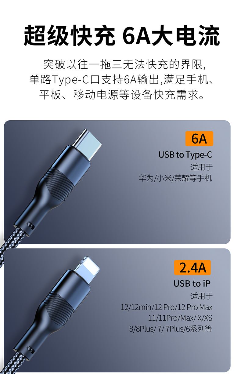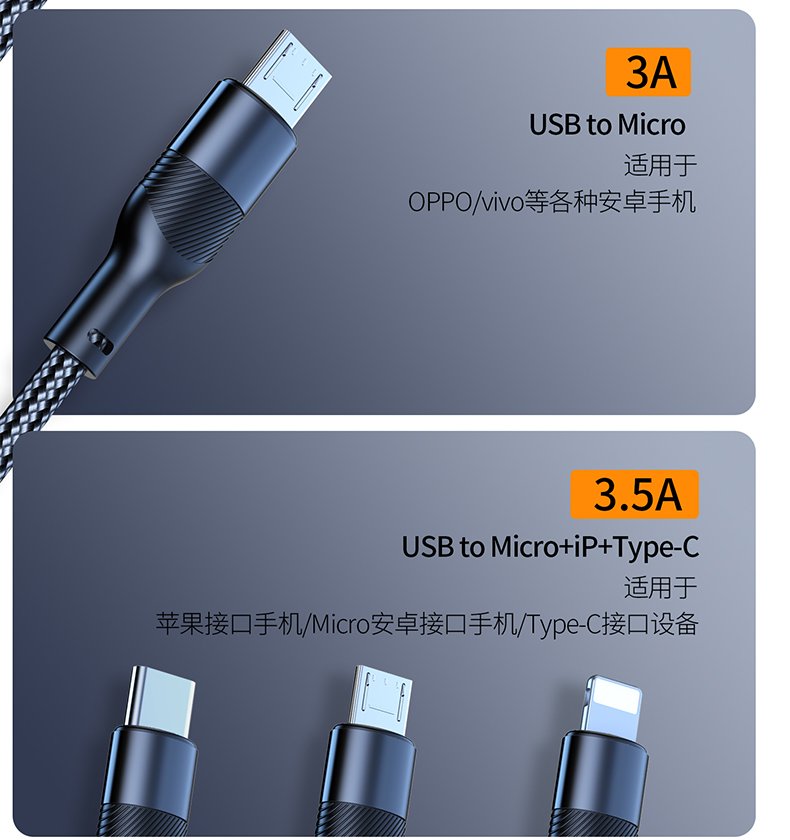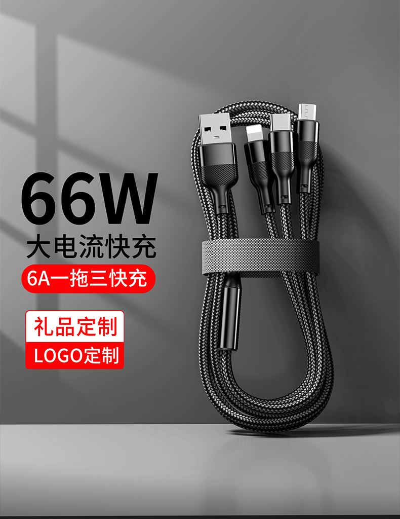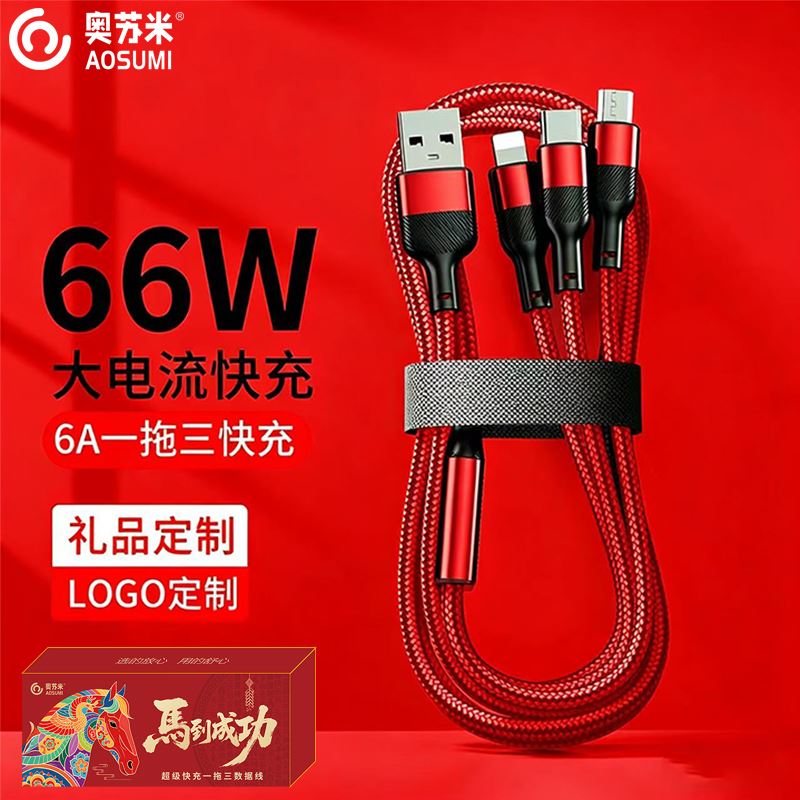 奥苏米开门红S5编织66W一拖三超级快充数据线