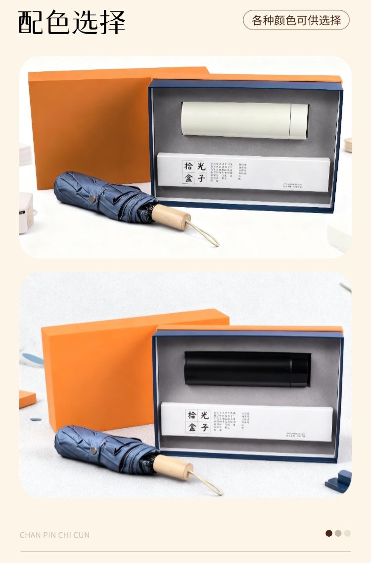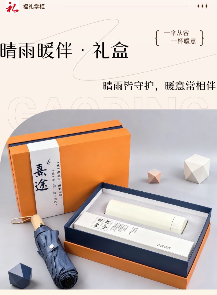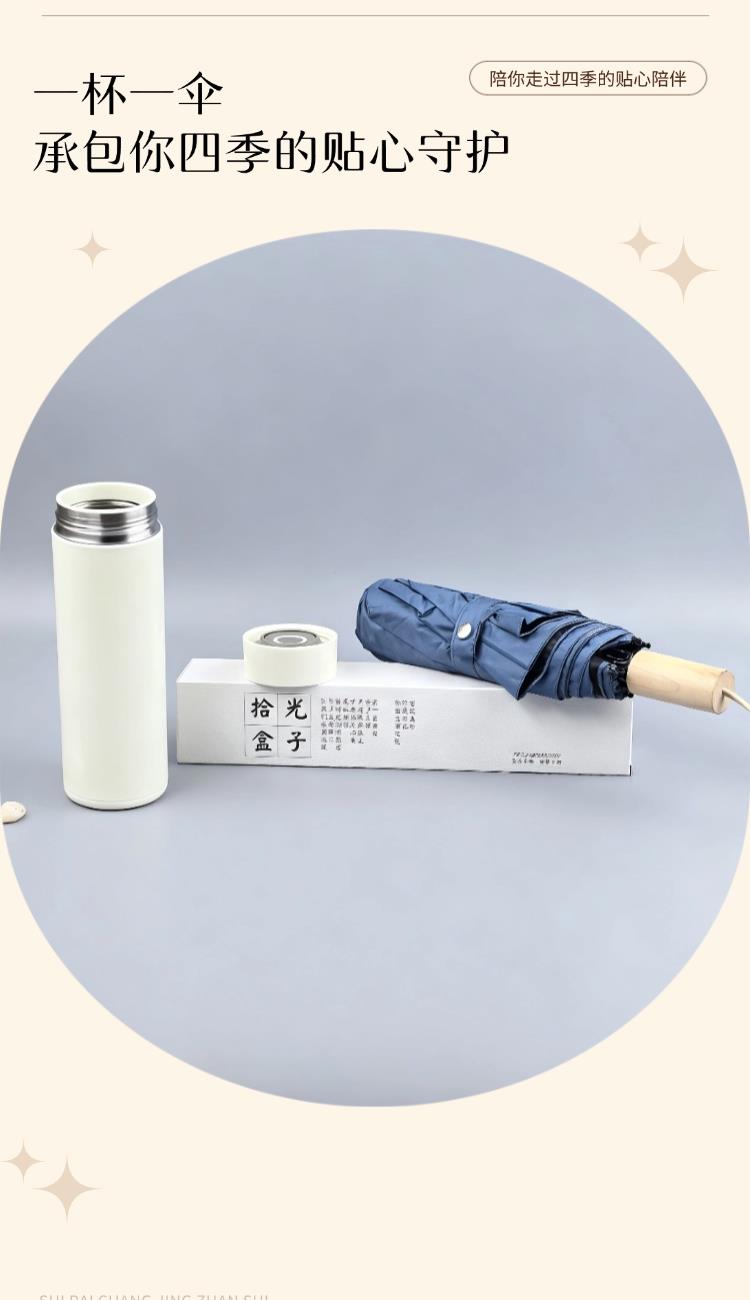 无论晴空万里还是细雨绵绵,这份贴心好礼都时刻相伴!【晴雨暖伴礼盒】为您甄选高品质保温杯,一杯子,暖住幸福温度;搭配轻盈坚固晴雨伞,一伞下,撑起晴朗心情。让它成为您传递温暖的使者,无论自用还是赠礼,都将快乐与关怀融入每个日常点滴。一份心意,双重守护,让温暖不“降温”,让天空常“放晴”! 保温杯 材质:内304不锈钢,外201不锈钢 容量:480ml 木柄晴雨伞 材质:黑胶 尺寸:三折,8骨,直径约99cm