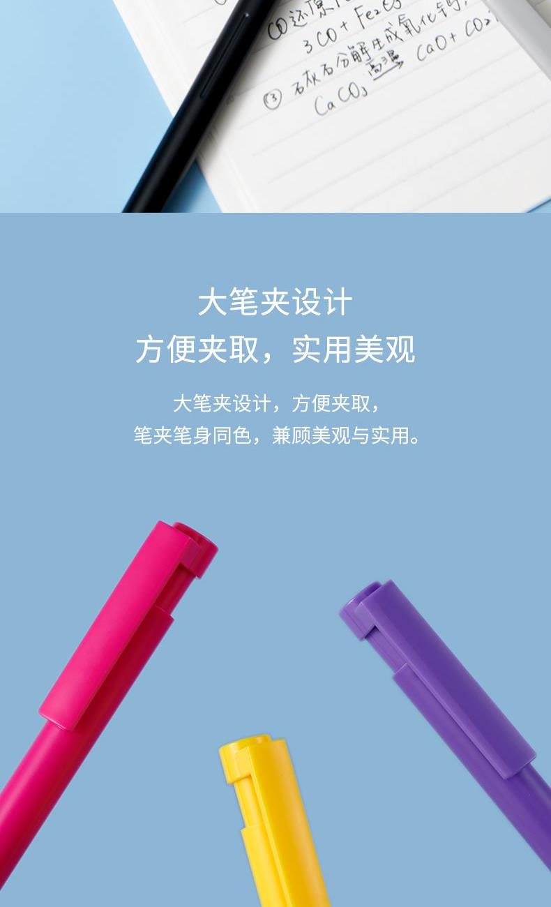 3、大笔夹设计,方便夹取,笔夹笔身同色,兼顾美观实用。