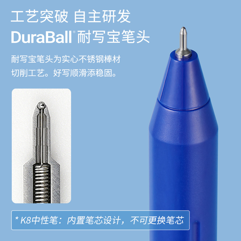 1、采用自主研发DuraBall 耐写宝笔头,好写顺滑添稳固。