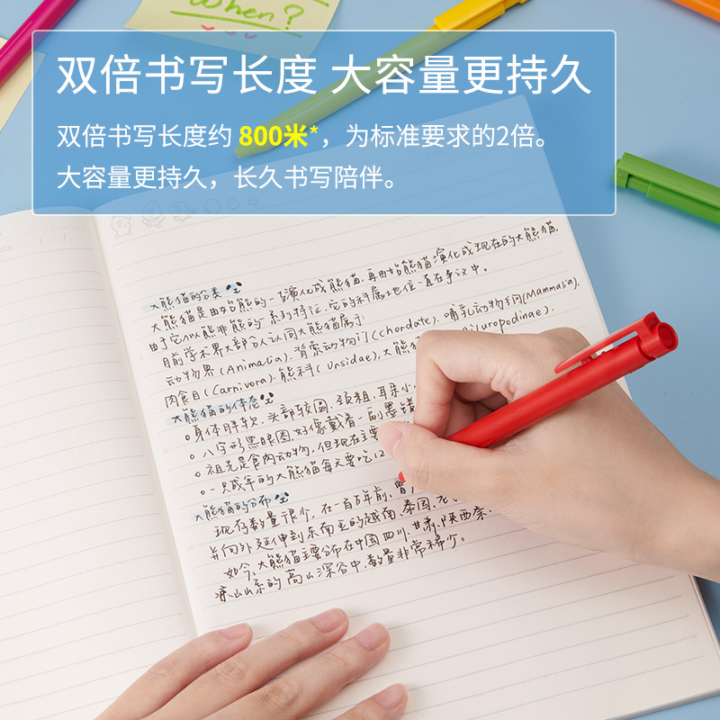 2、双倍书写长度约 800米,大容量墨水,书写陪伴更持久。