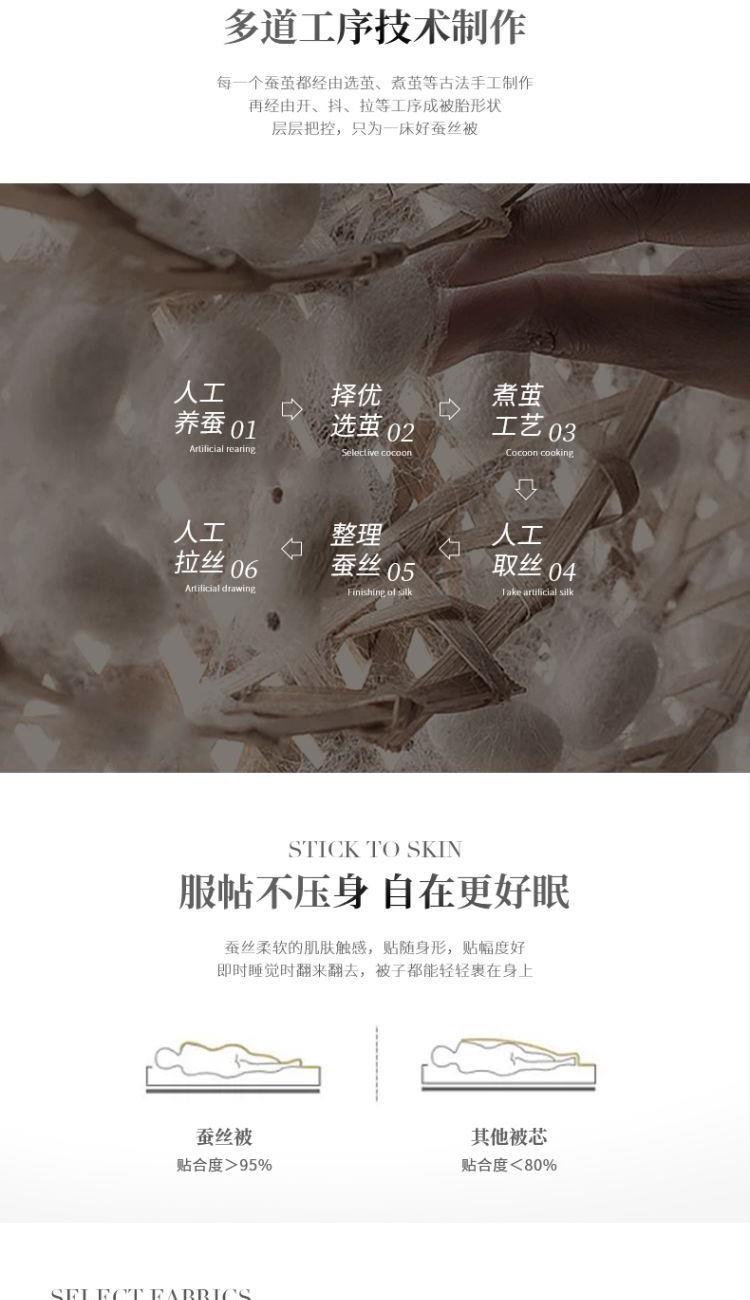 面料:聚酯纤维 规格:200*230cm 填充物:柞蚕丝 填充克重:600g 包装:手提无纺布软包