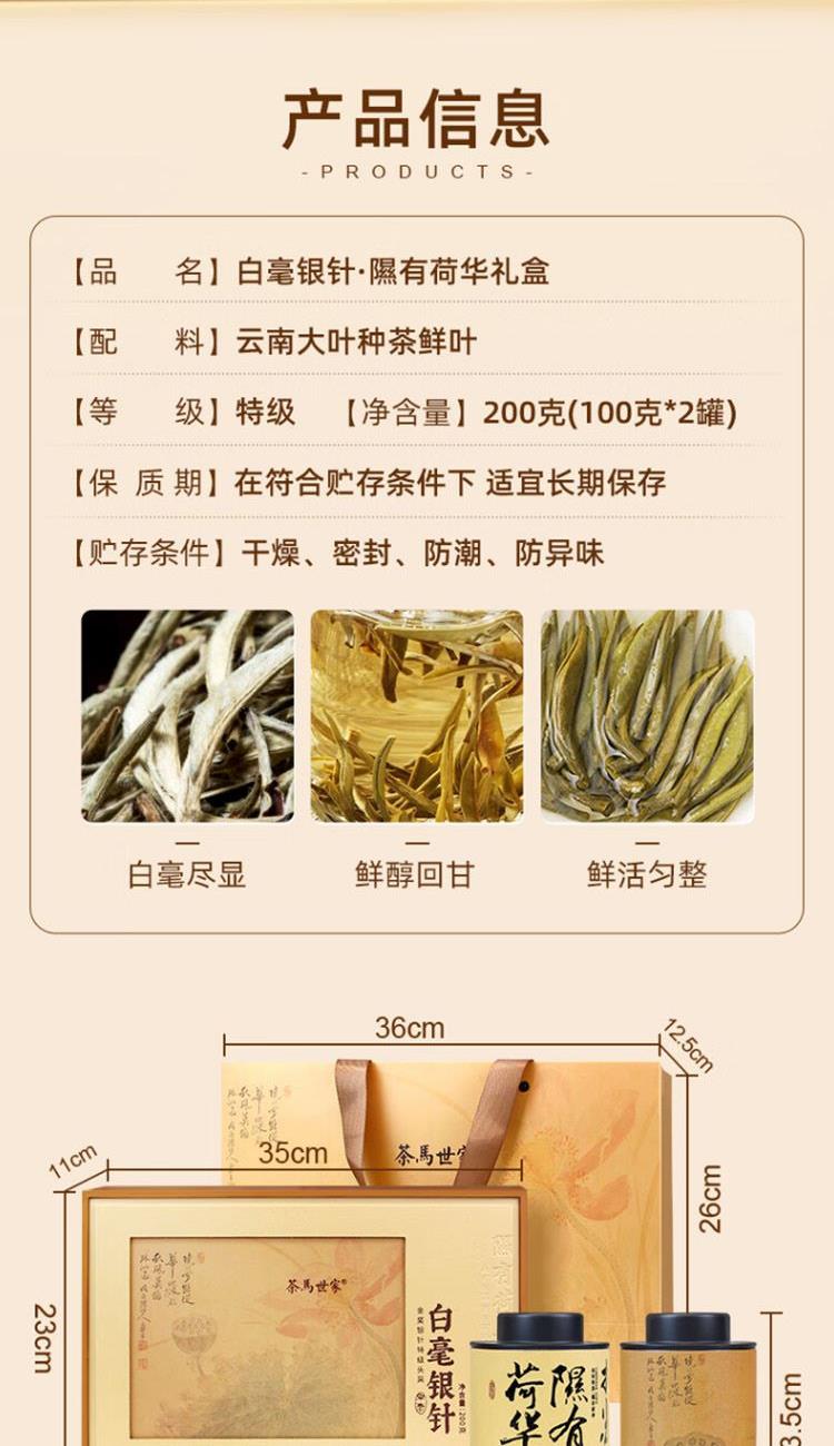 茶马世家白毫银针荷华礼盒200g(100g*2罐)