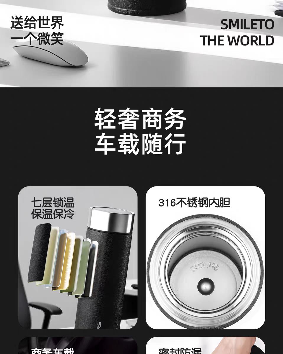 316不锈钢内胆,健康安心 拆卸式滤网,茶水分离 极简设计,经典百搭 琐温科技,强效保温