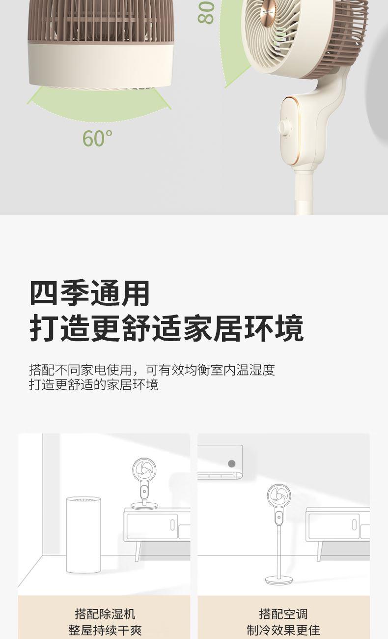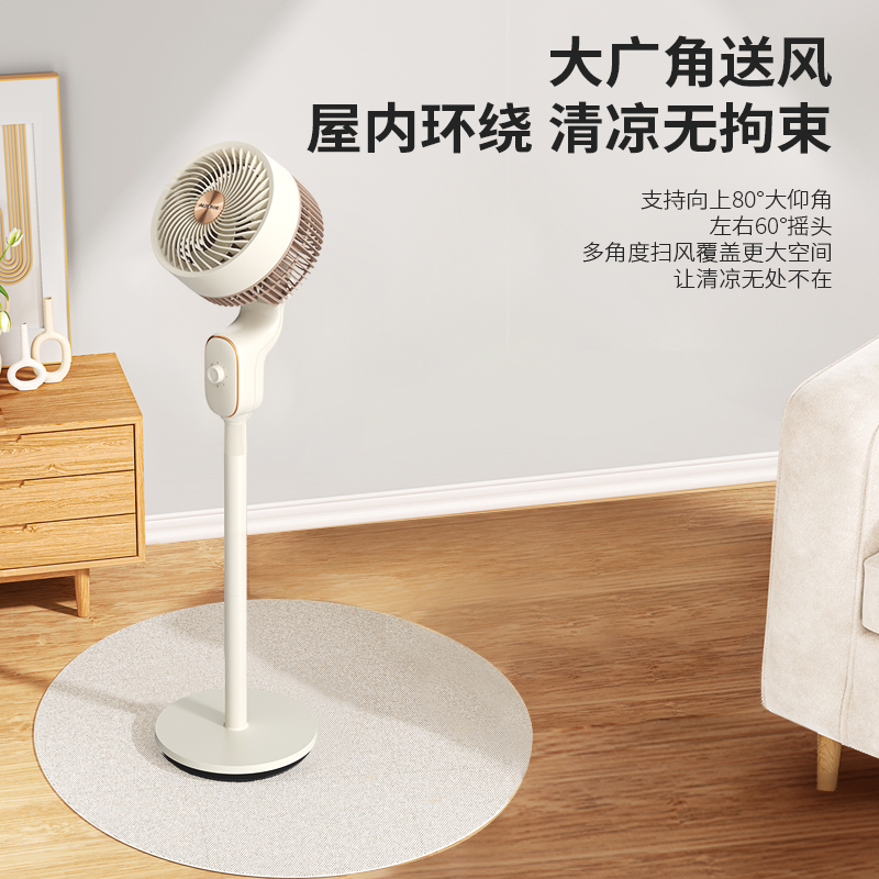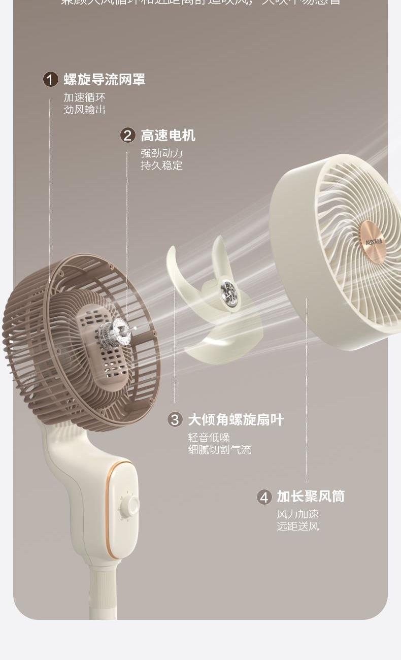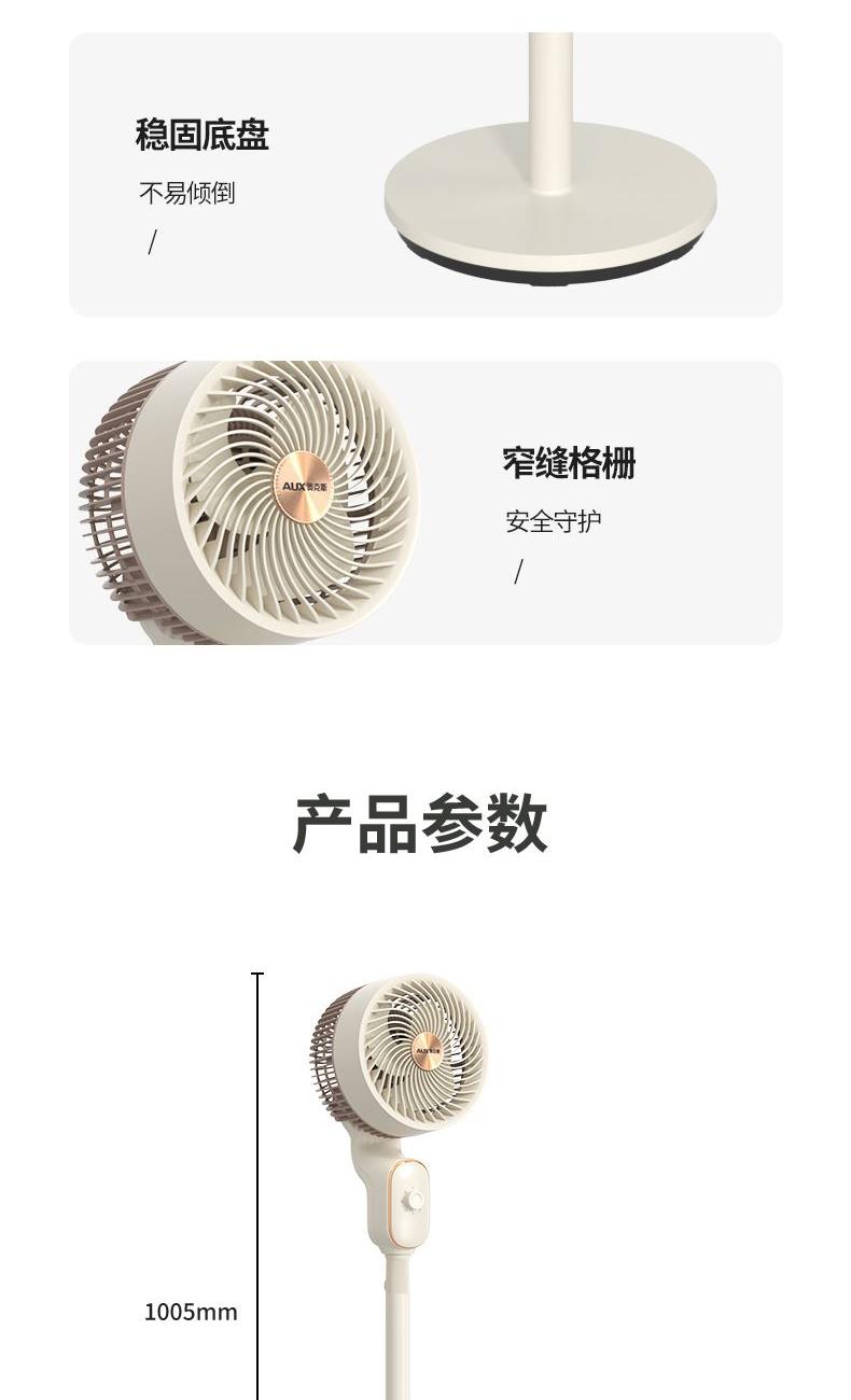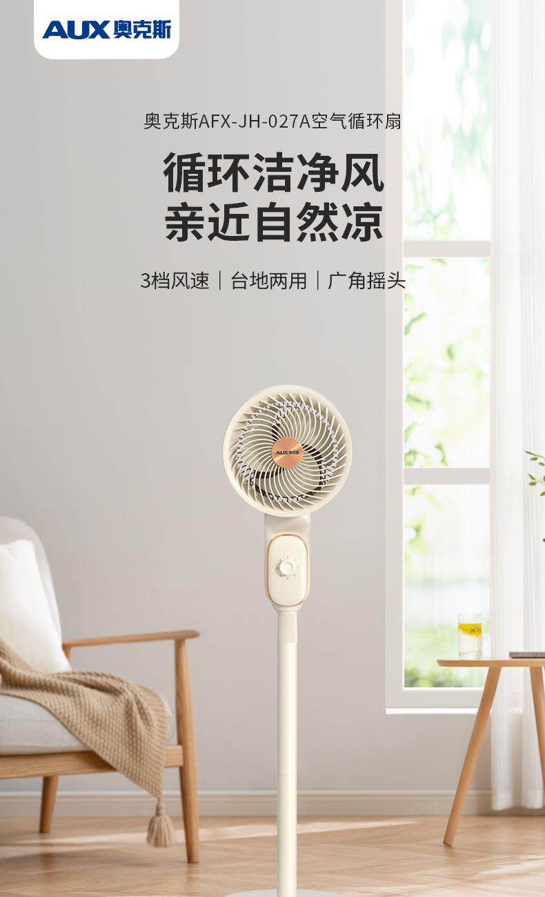 额定电压:220V~ 额定功率:35W 额定频率:50Hz 电源线长:150cm 材 质:前网、后网、风叶、底座:PP,立柱管:ABS > 3档风速调节,机械旋钮,操作简单 > 柔风低噪,节能省电 > 隐藏式提手,方便提拿 > 台立两用,上下左右摇头 > 贴心设计香薰盒,可放置防蚊虫香薰,驱赶蚊虫
