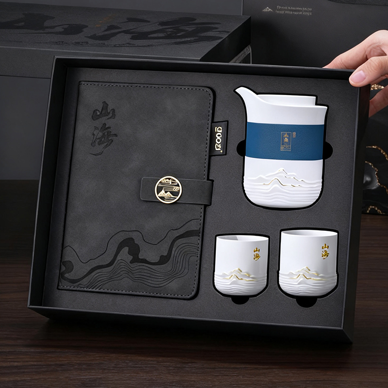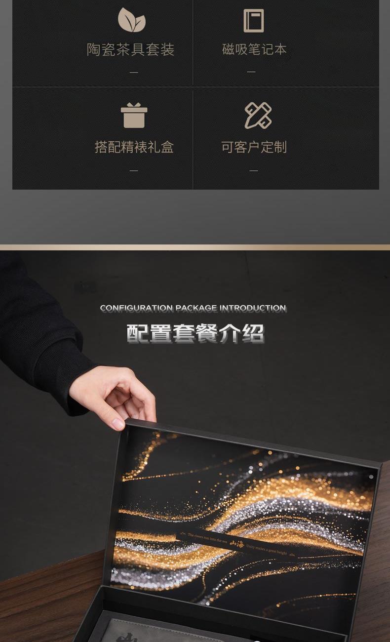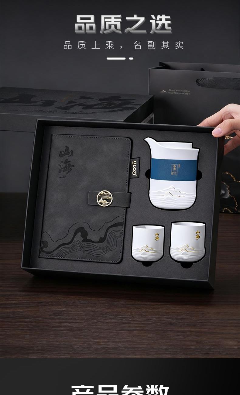 配 置:笔记本册*1、快客杯*1、主杯*1、客杯*1、 礼盒+手提袋*1 本册规格:80克112张 茶器容量:快客杯:280ml 主杯:80ml 客杯:40ml 材 质:茶具:陶瓷+304不锈钢茶网 笔记本册:海绵纸板+磁铁扣 尺 寸:笔记本册A5:D145x210x20mm 快客杯:D96x128mm 主杯:D54x60mm 客杯:D43x55mm