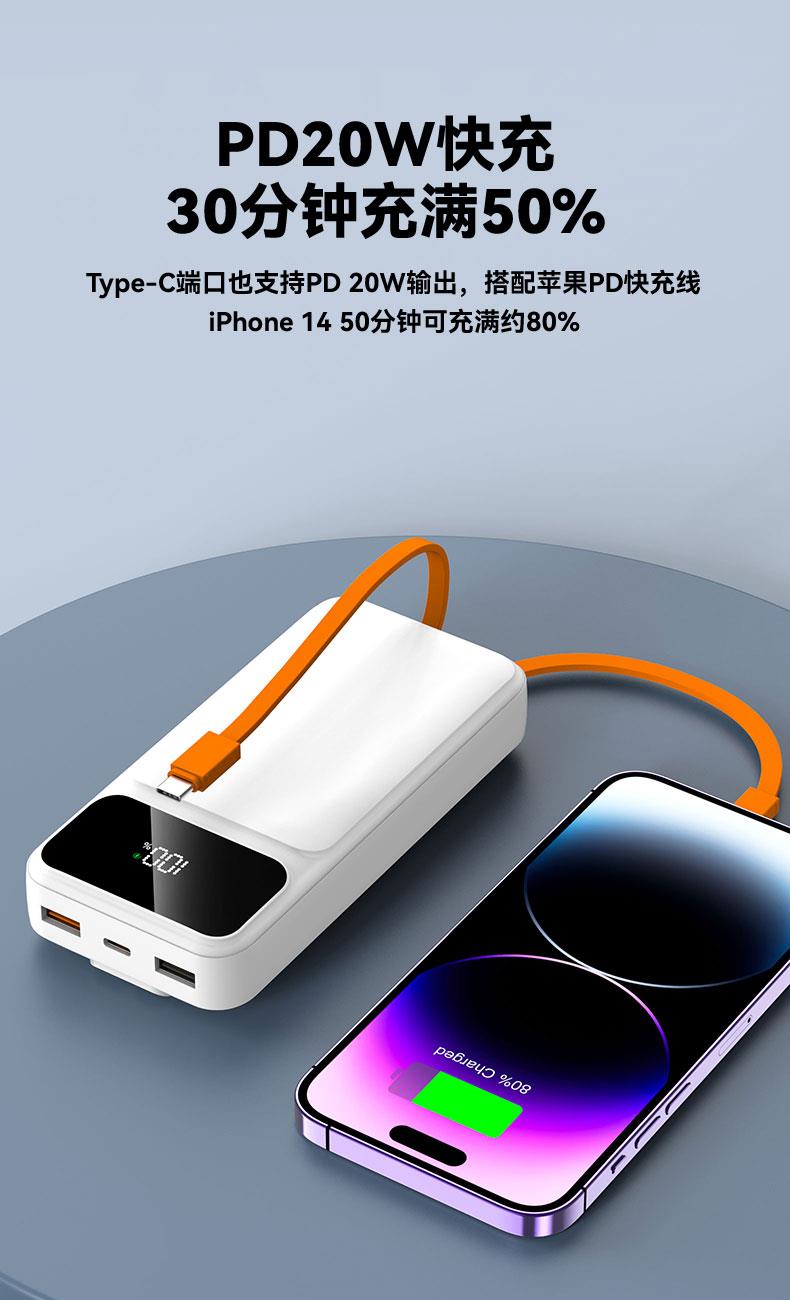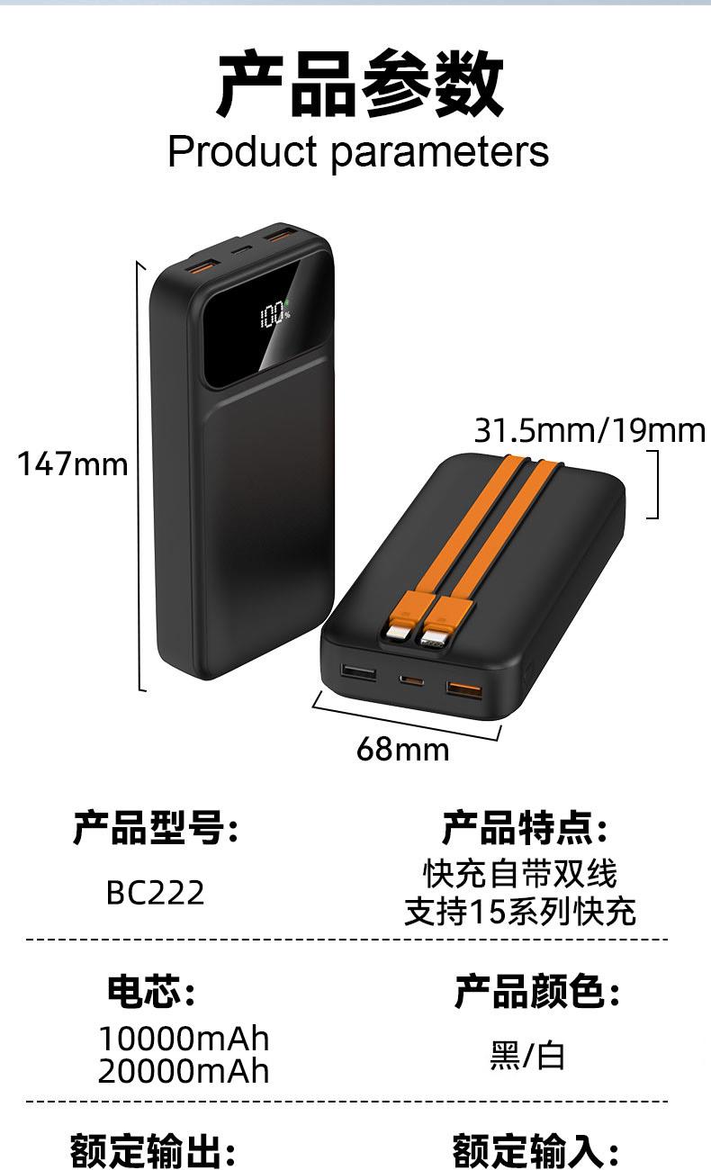 聪鲸20000mAh自带线移动电源22.5W快充BC222