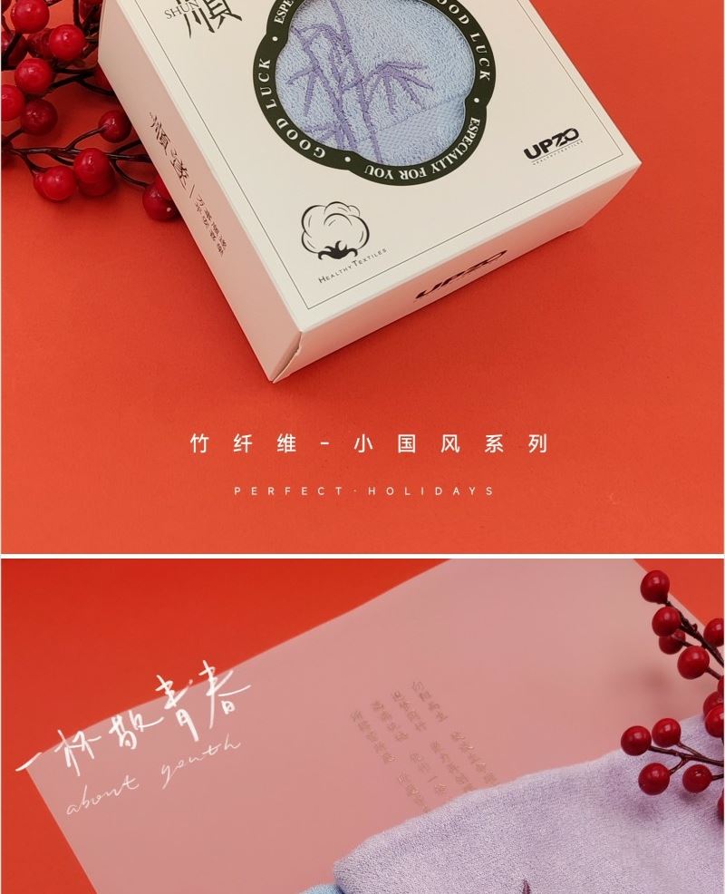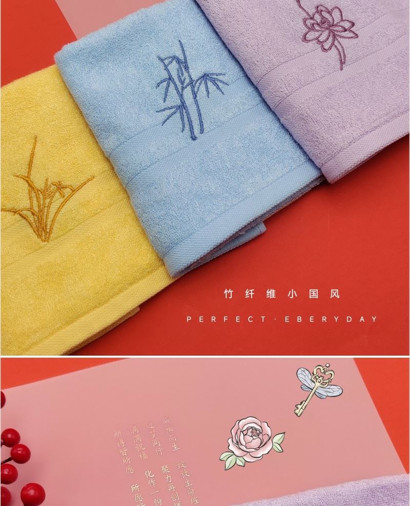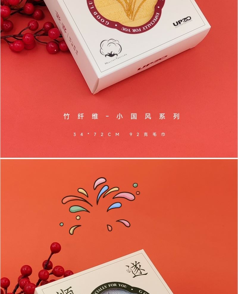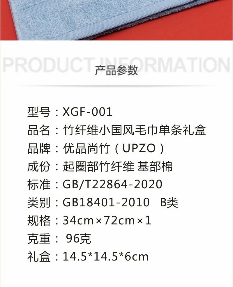 型号: XGF-001 产品内容 竹纤维小国风大毛巾×1 92克 34*72CM (包含国风刺绣) 成份:起圈部竹纤维 基部棉 外盒:14.5*14.5*6CM 精选竹纤维材质 搭配国风刺绣与祝福礼盒 创意好礼