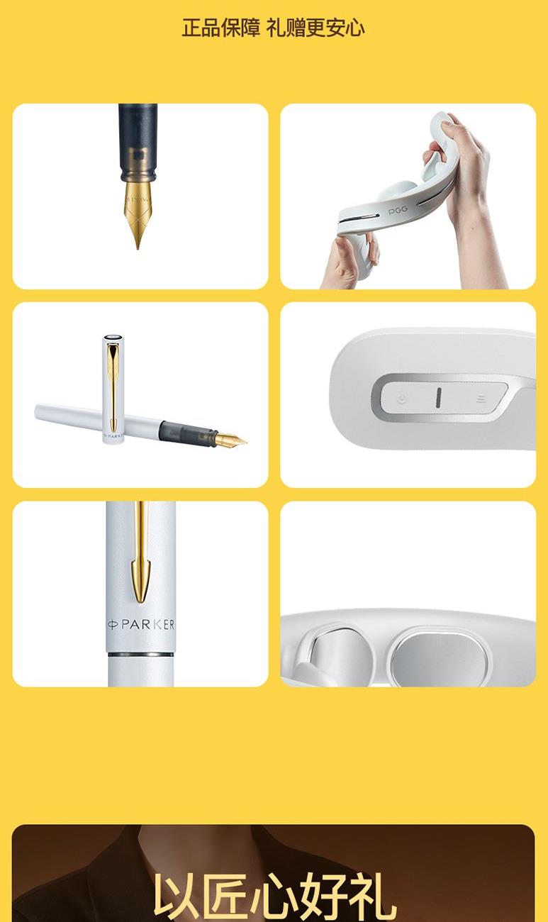 派克 威雅XL入门白色金夹宝珠笔 × 1 PGG P5颈椎按摩仪经典款 × 1 向日葵大师礼袋 × 1