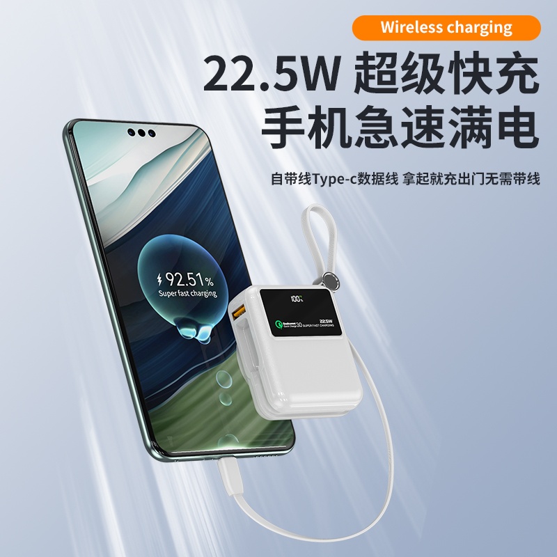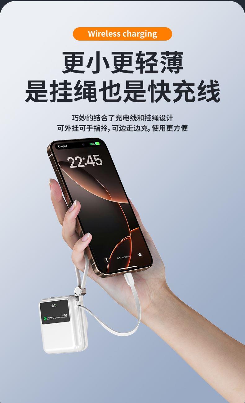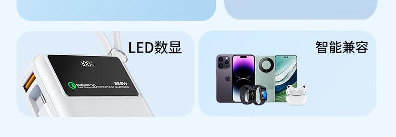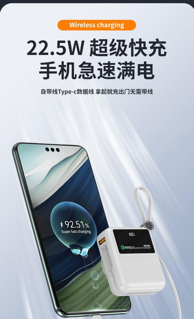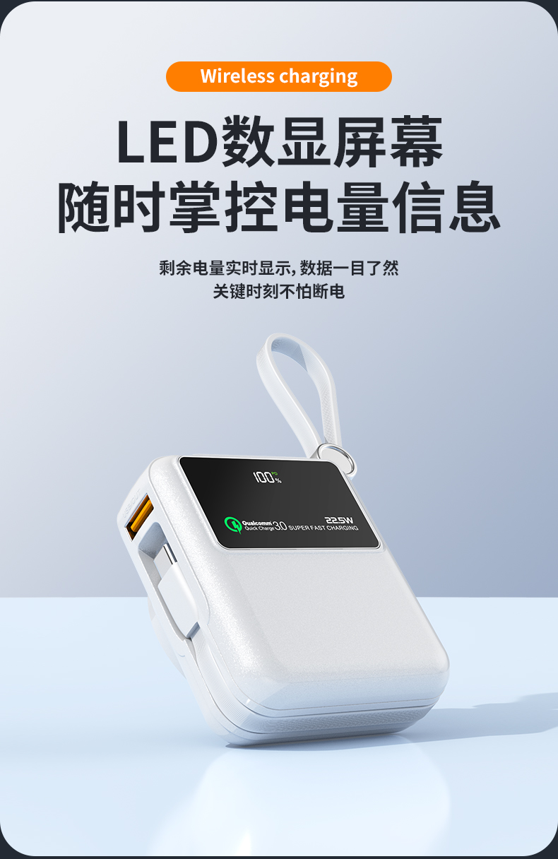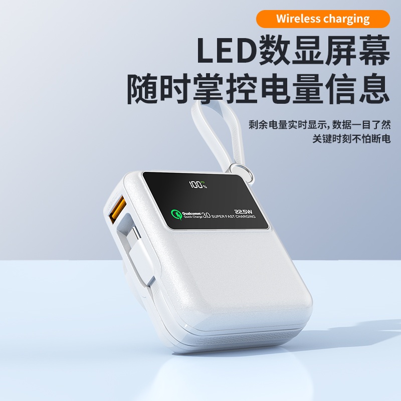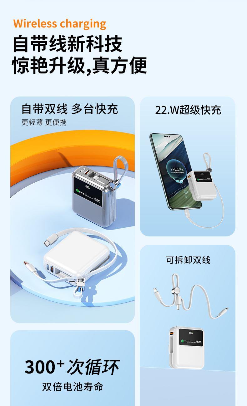型号 101a1 容量 10000mAh 电芯 聚合物电芯 产品特点 1、USB输出22.5W 2、TYPEC双向快充PD20W 3、自带插拔闪充线,自带提手 4、C线双向快充,L线PD20W 5、天地盖礼品盒包装 输入总功率 PD20W(5V-3A,9V-2.22A) 输出总功率 22.5W(10V-2.25A,12V-1.5A) 产品尺寸 71*61.5*26mm 彩盒尺寸 195*120*33mm 产品重量 190g 产品颜色 金属银,珠光白 其他颜色可以定制 一箱 :20/小箱,120/大箱