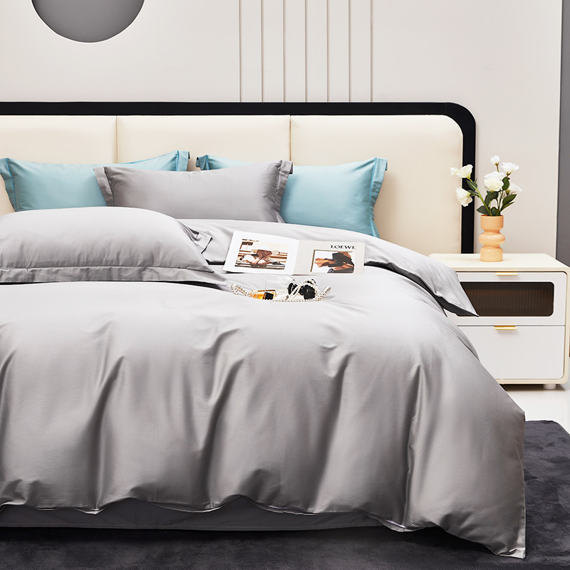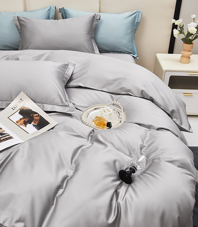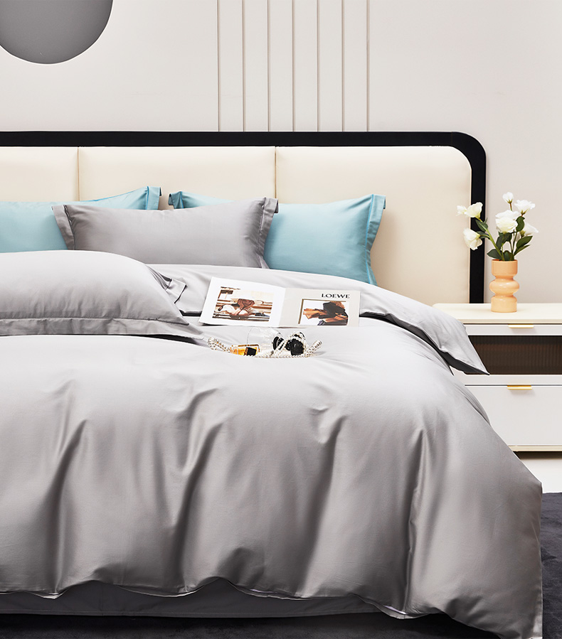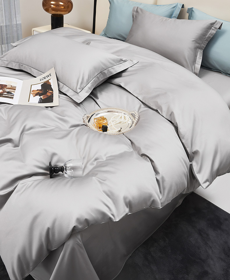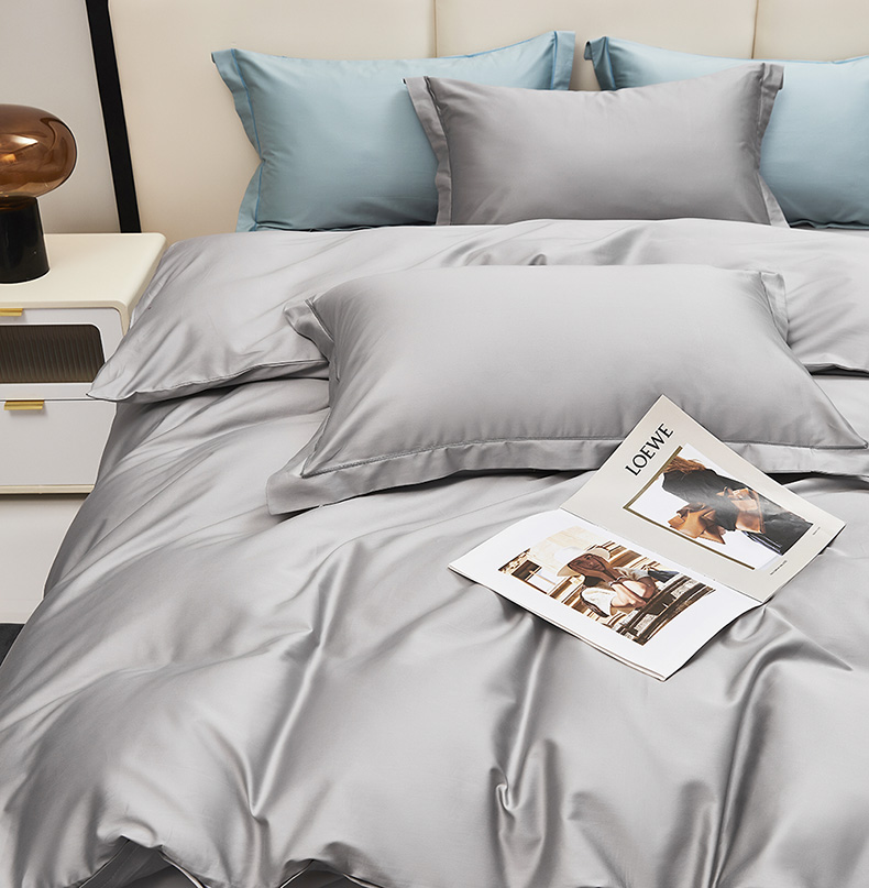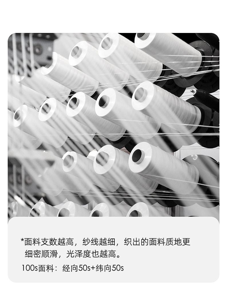 被套:200*230cm 床单:230*245cm 枕套:48*74cm*2 面料:长绒棉 执行标准:GB/T22796-2021 安全类别:GB18401-2010 B类 1.采用高支高密纺织工艺,经向50s+纬向50s,面料更加紧密细腻,触感柔软舒适,透气性佳,带来奢华的睡眠体验。 2.活性印染:使用环保活性染料,色牢度高,不易褪色,安全无毒,呵护您的健康睡眠。