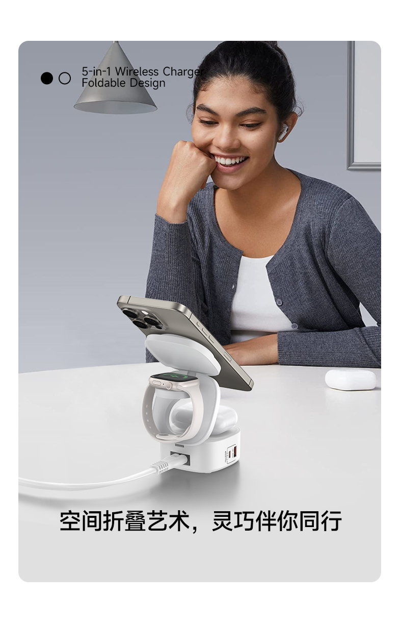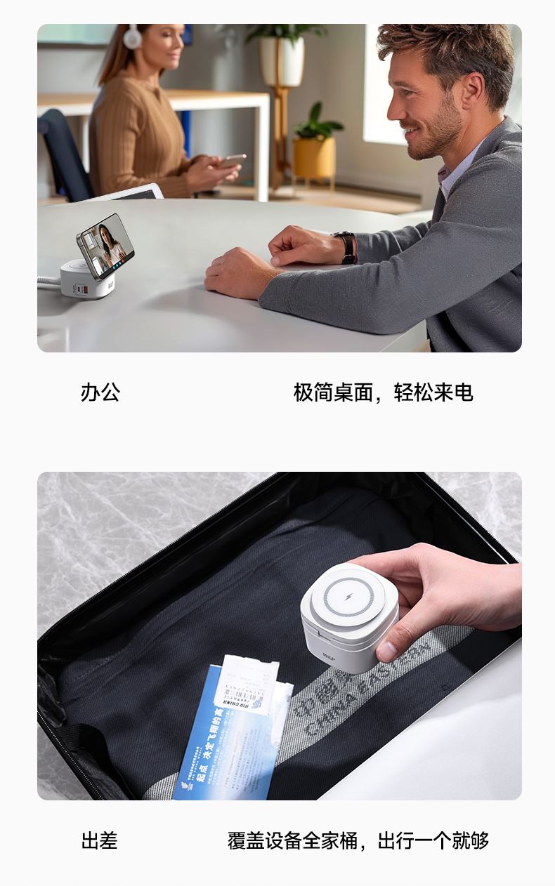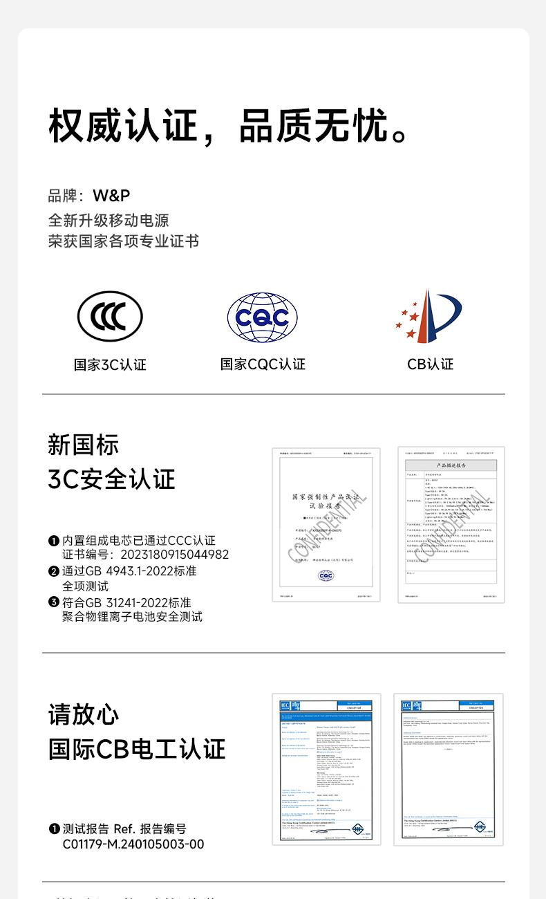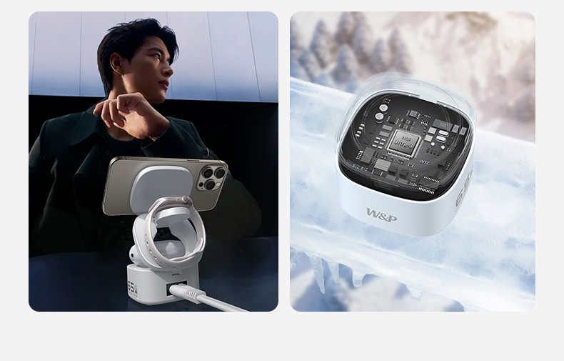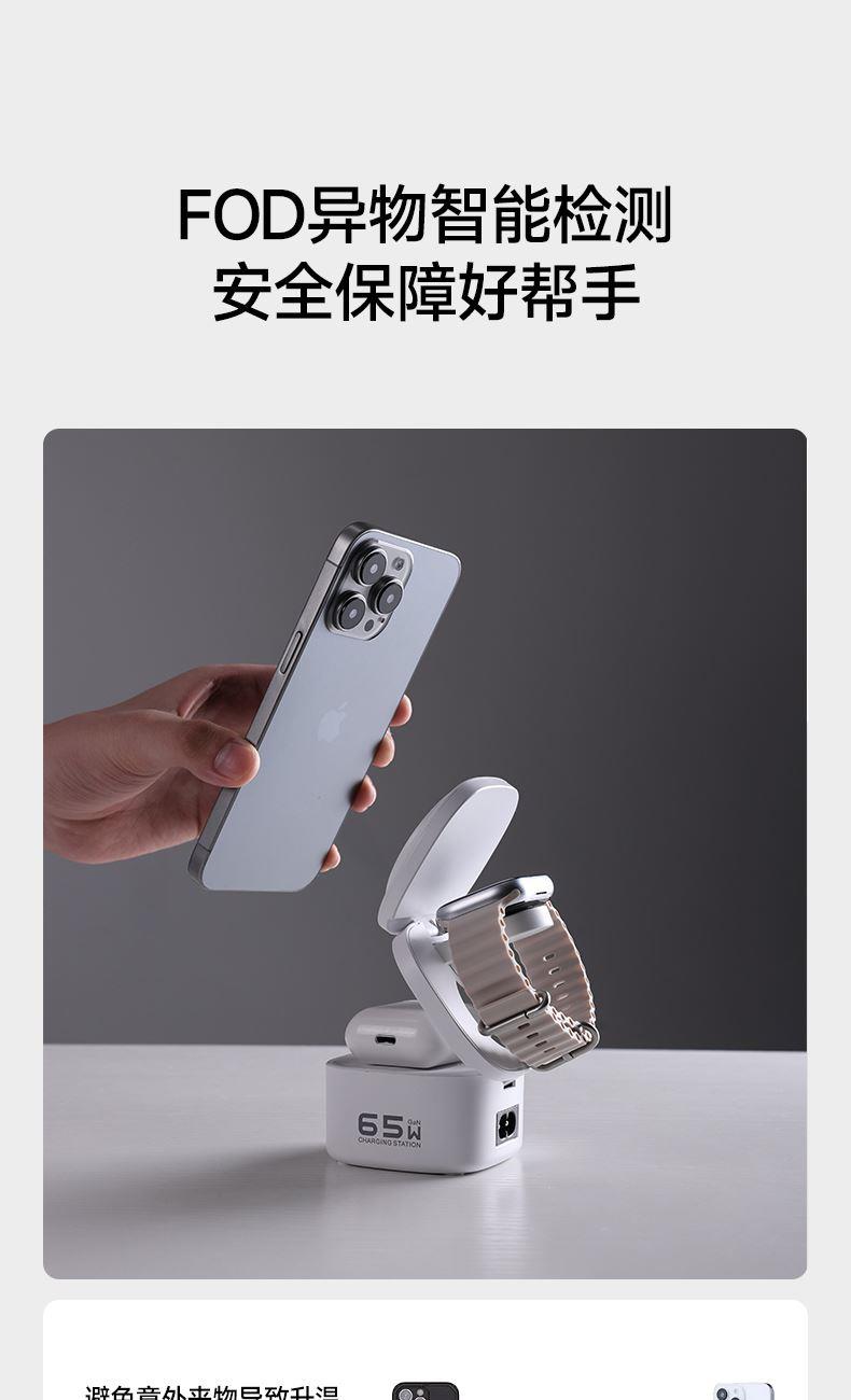 产品型号:W08A 产品尺寸:68.9*68.9*54.8mm 产品重量:约255g W&P65W氮化镓充无线充,科技赋能移动生活; 采用全新的第三代氮化镓数字芯片充电效率提升1.2倍; 覆盖设备全家桶五效合一; 先进制造芯片工艺,散热效率跃升50%; 3C认证,CQC认证,CB认证,权威认证,品质安全可靠; WP-N52.M稀土永磁体感受超级磁场吸引力; 一体式折叠设计轻巧,无感携带。