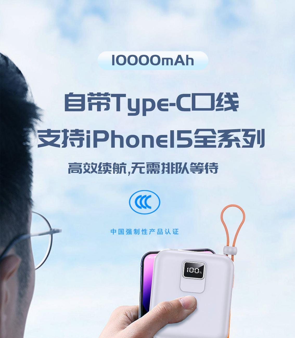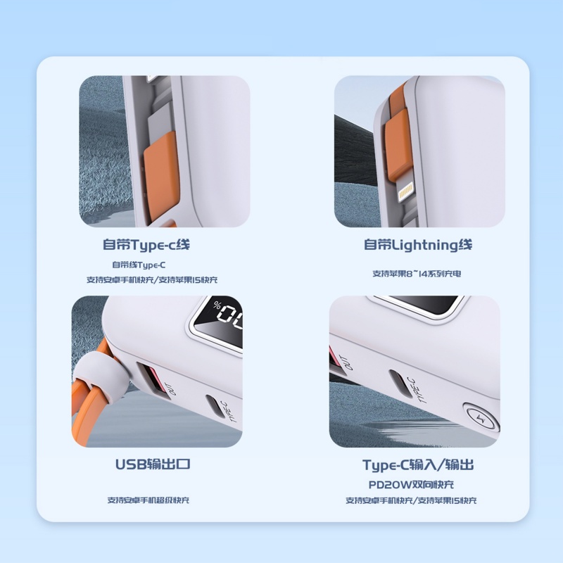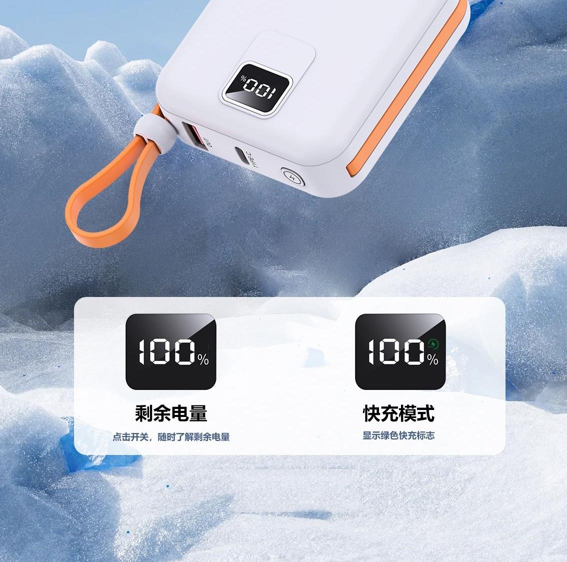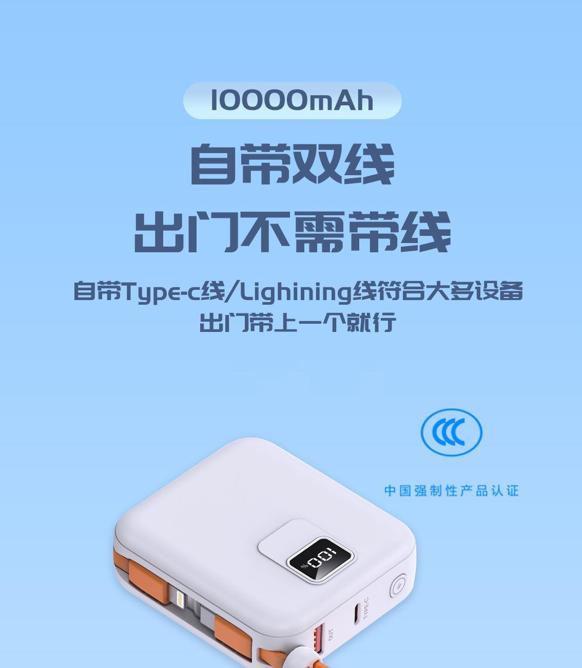 产品卖点:LED数显电量,掌握剩余电量,自带Type-c线支持苹果15,16快充,USB接口支持22.5W超级快充,充电宝支持快充蓄电,具有过压保护,过放保护,短路保护,过充保护等功能,可带上飞机。