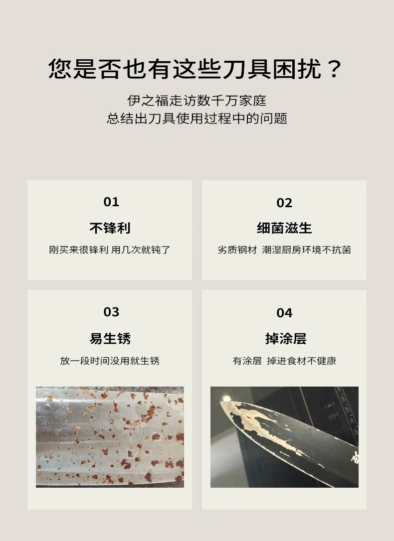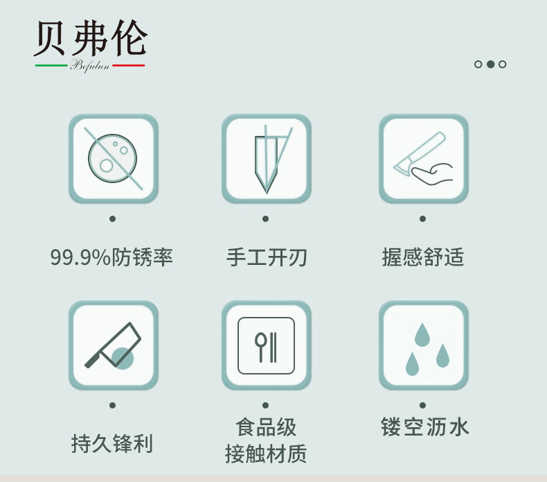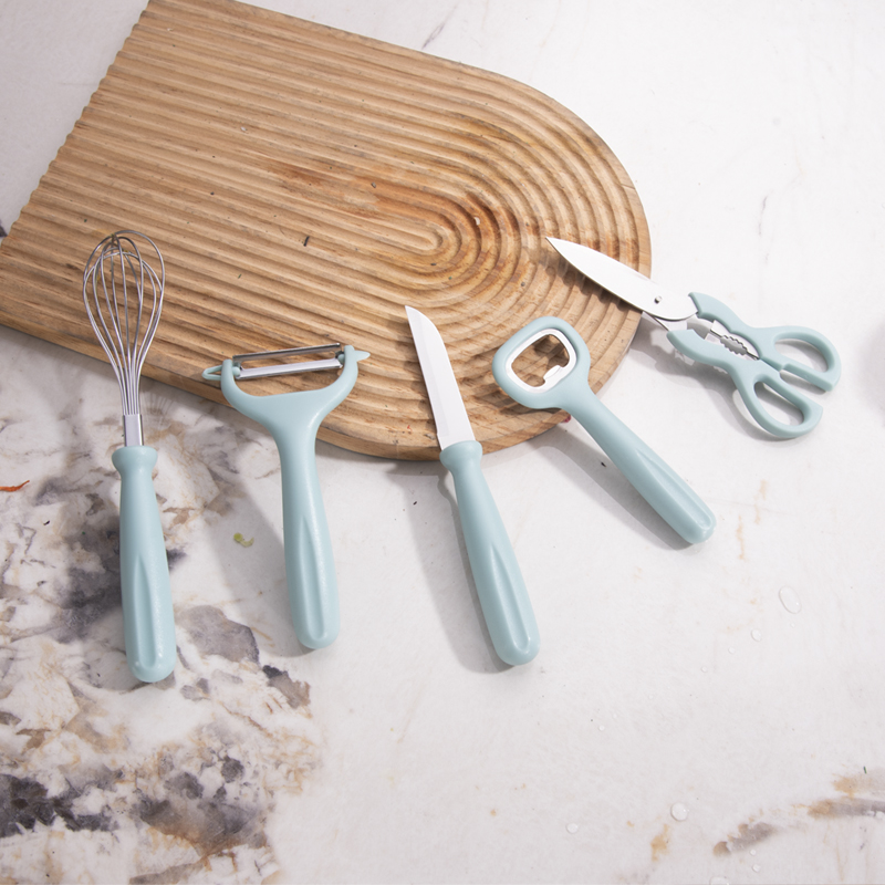 实用厨房套件,小巧多样、功能齐全,家庭生活理想之选 PP手柄不脱手、易用力,减少长久使用带来的疲劳感 独特湿式开刃,采用先进淬火热处理工艺,持久锋利