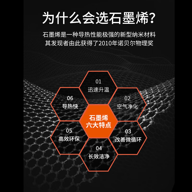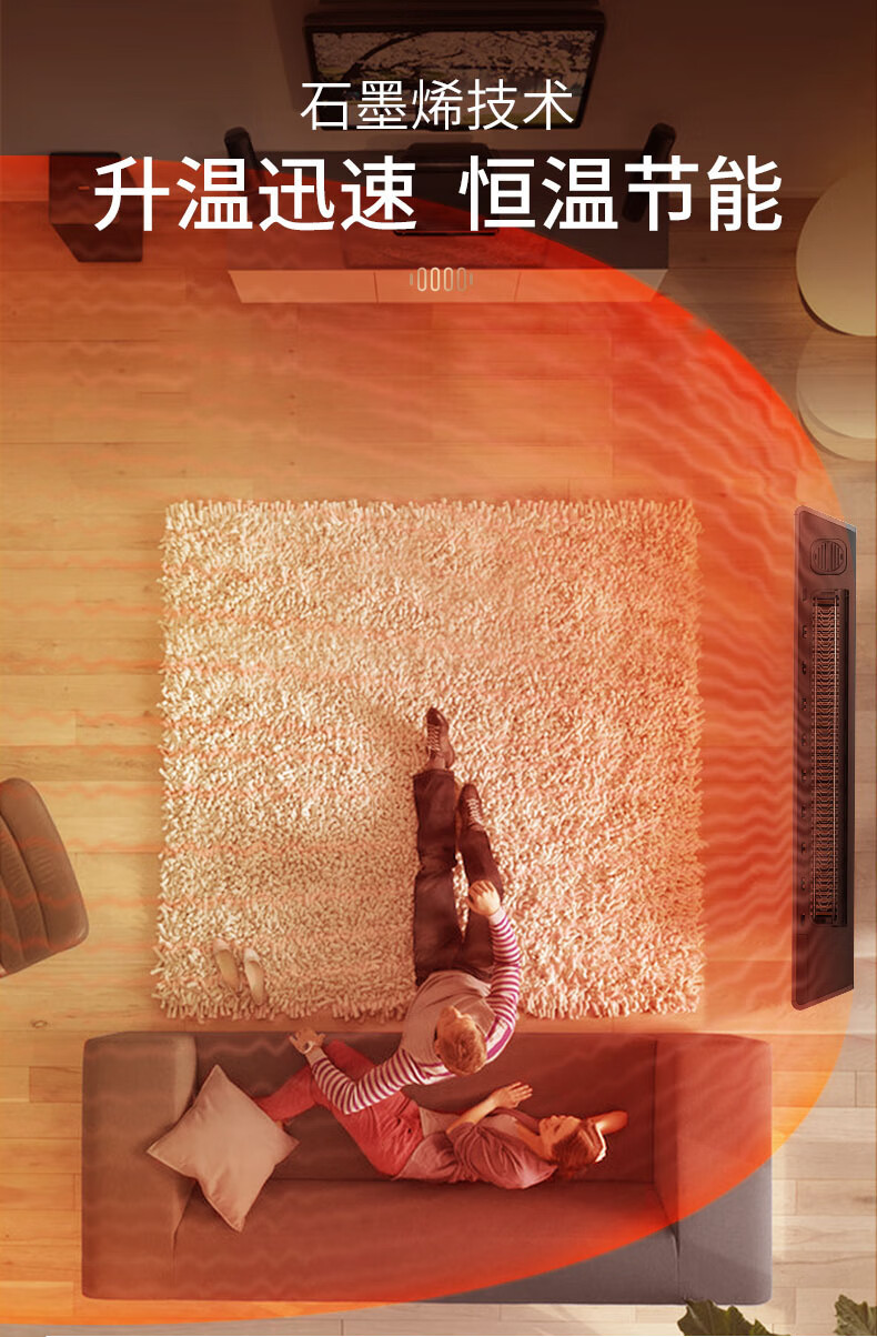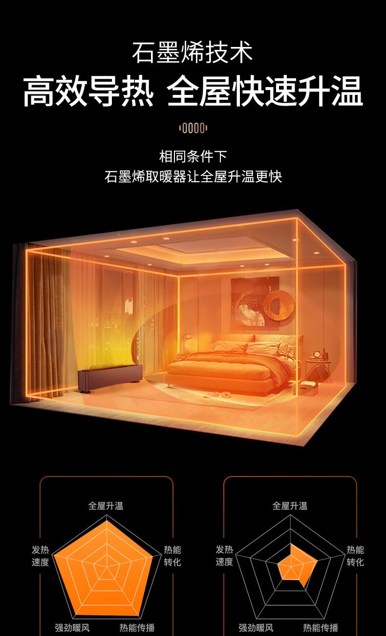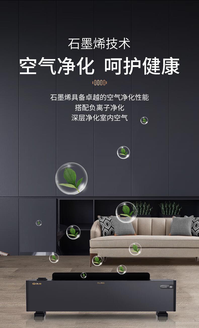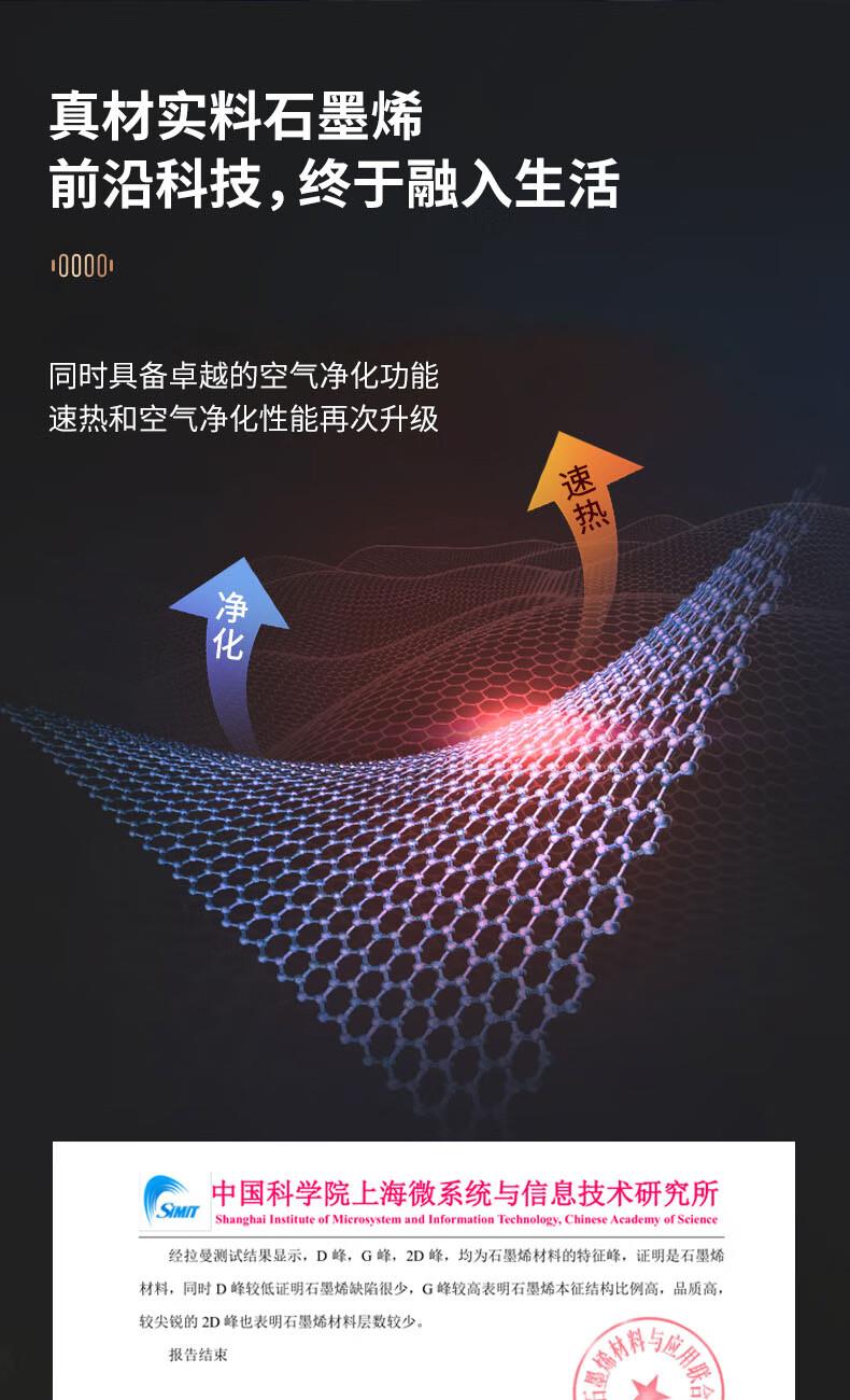 石墨烯速热和净化, 大面积全屋暖, 2000万负离子,IPX4防水