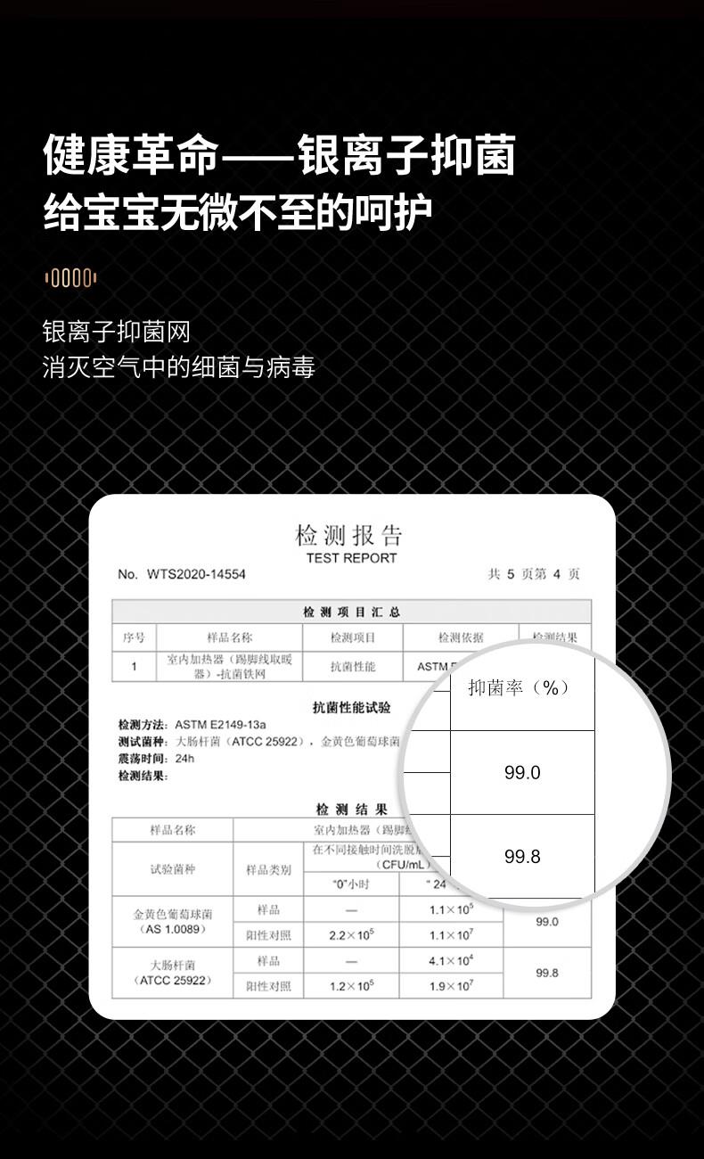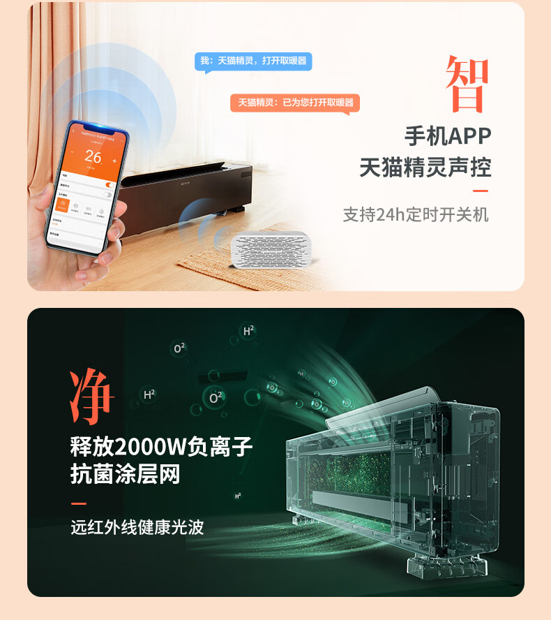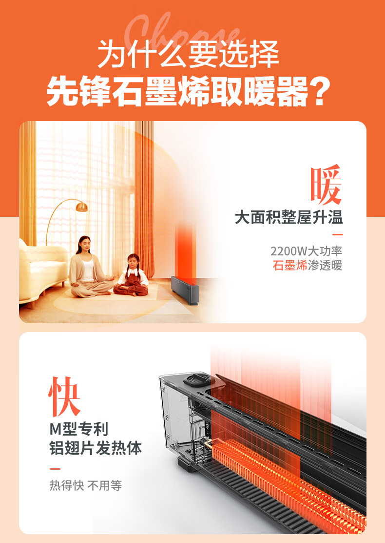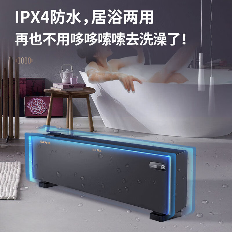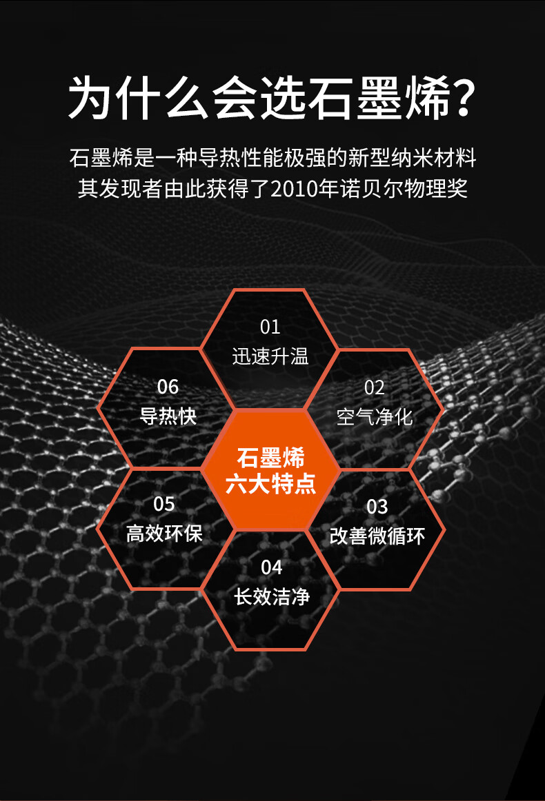 石墨烯速热和净化, 大面积全屋暖, 2000万负离子,IPX4防水