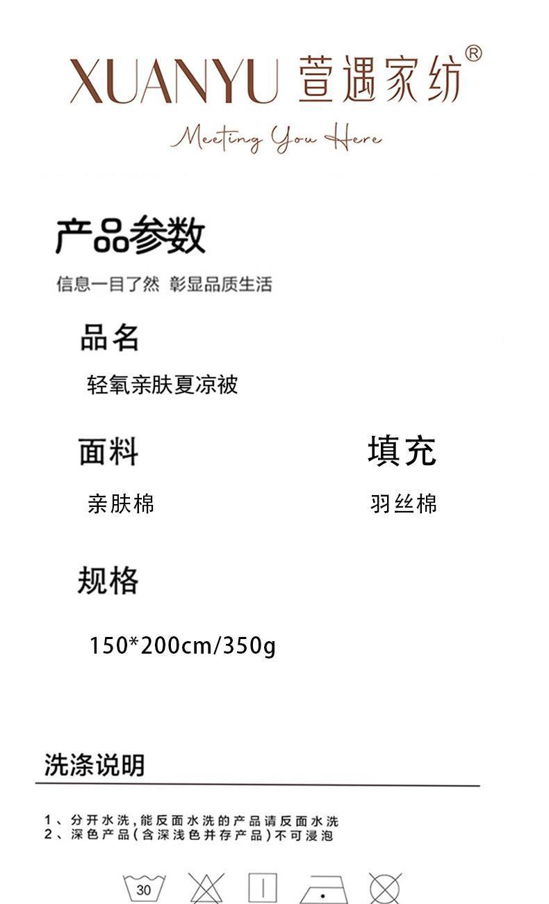 萱遇家纺轻氧亲肤夏凉被X-B8001