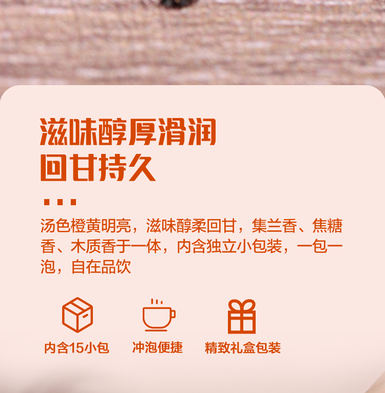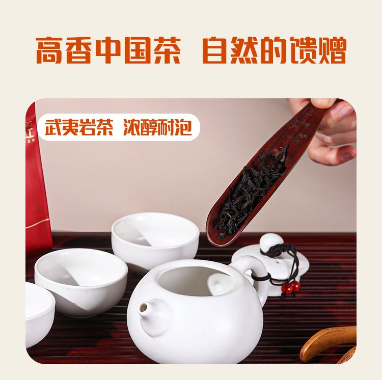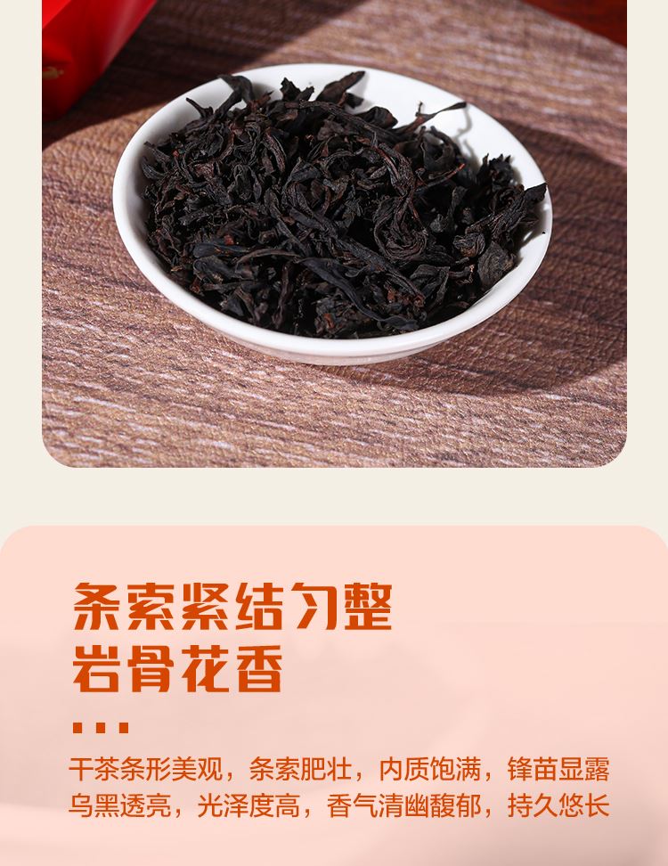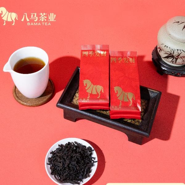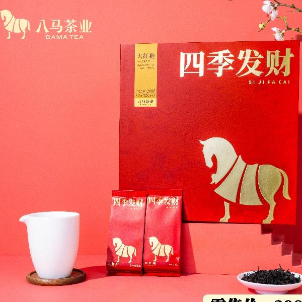 产品规格:208克(8克×26包) 原料产区:福建·南平·武夷山 质量等级:一级 外盒尺寸:270*75*270mm 手提袋颜色: 红色手提袋 推荐理由 : 四季发财大红袍 1、方正大气的茶叶礼盒,经典大气,精制印花彰显质感;单泡装,方便携带与冲泡;馈赠品质茶礼,性价比高; 2、闻·闻干茶 干茶紧结壮实,色泽稍带宝色,具有焙火香。 闻·闻茶汤 茶汤深橙黄,香气幽长,略显花果香。 品·品滋味 滋味醇厚回甘,韵香回味。