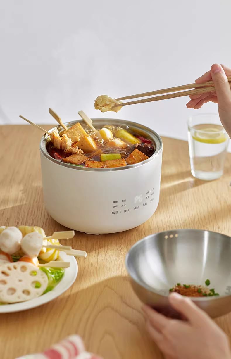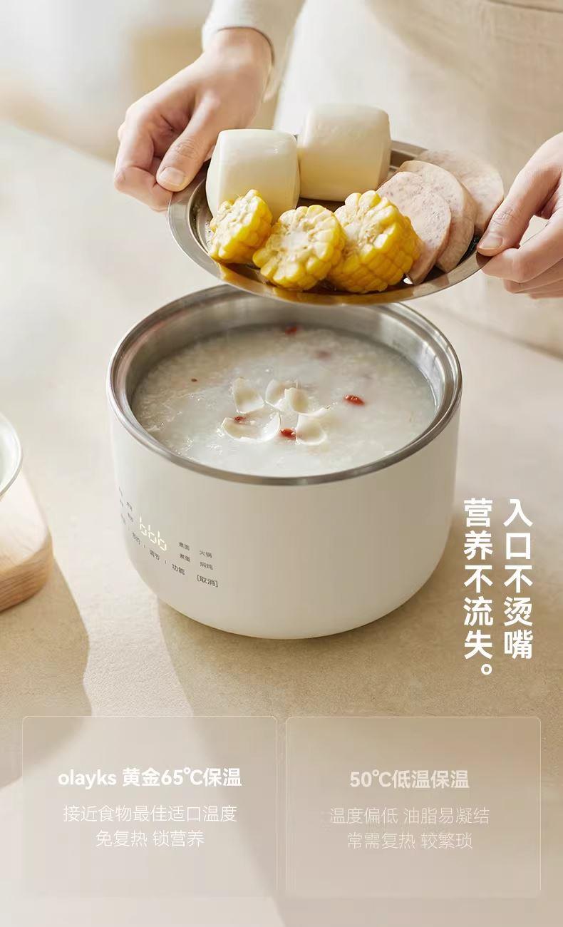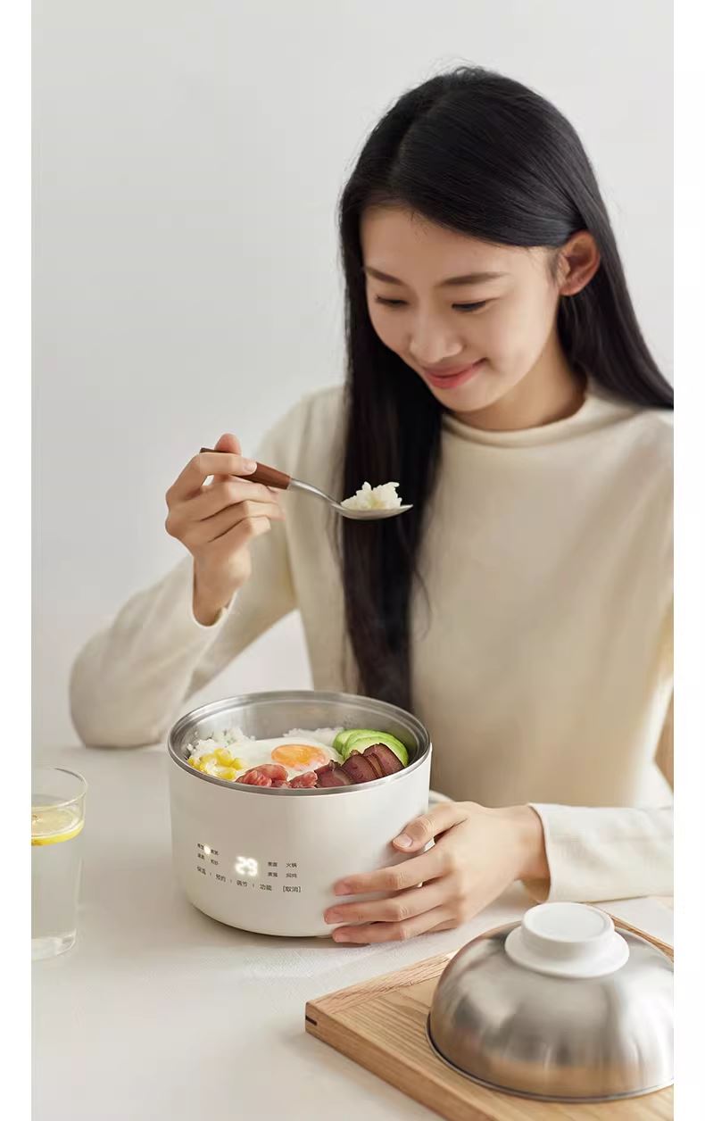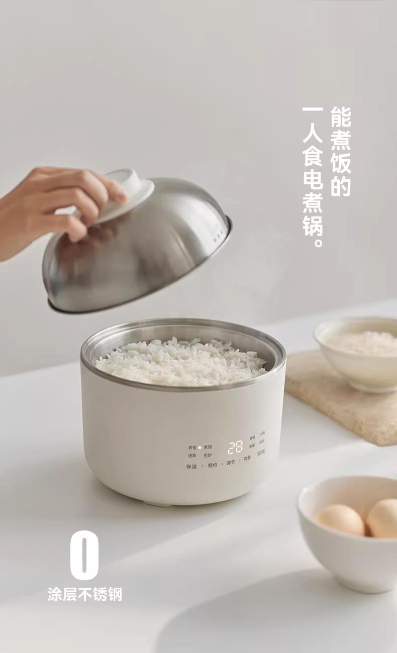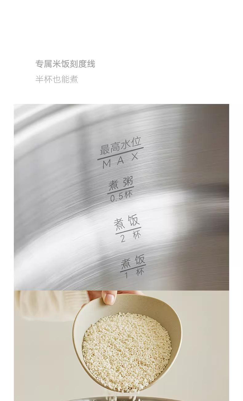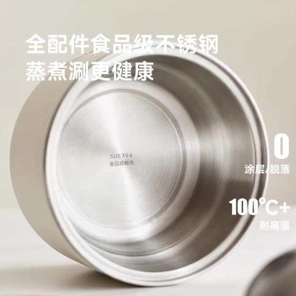 颜色:陶白色 容量:1.5L 毛量:2.3kg 额定功率:600W 产品尺寸:185*185*198mm 包装尺寸:241*241*175mm 条码 : 6977735713403 1. 食品级304不锈钢内胆/锅盖/蒸盘 2. 触控微电脑8大菜单定时/预约 一键安心煮 3. 食品接触都无涂层才是真健康