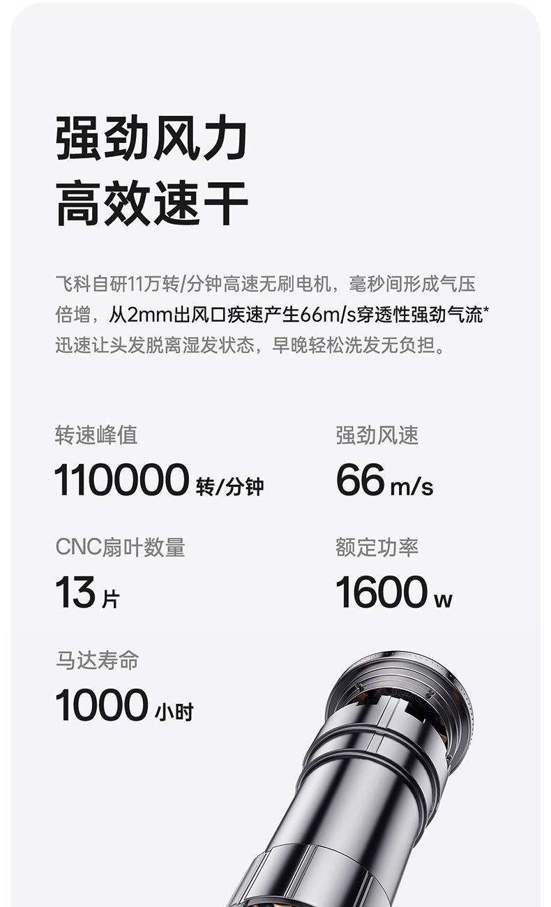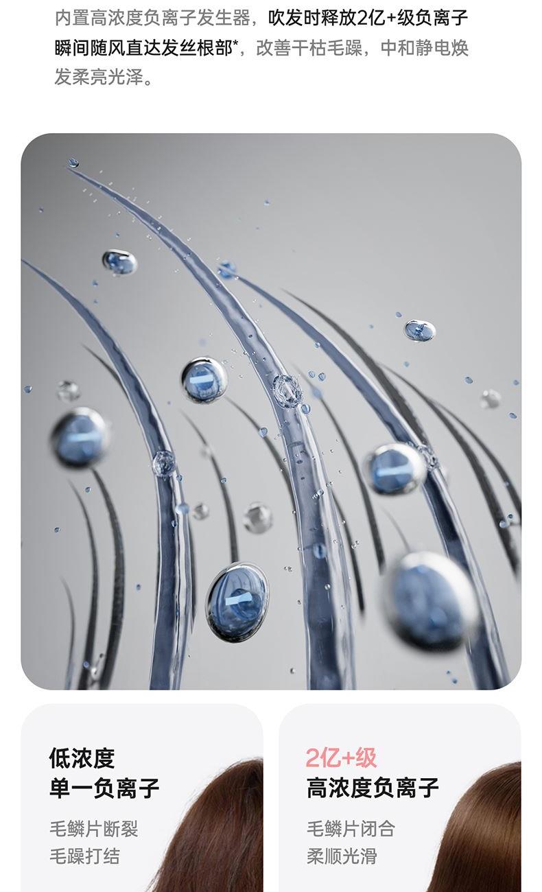材质:不锈钢,ABS 配置: 11万转高速电机负 热量均衡技术 智能恒温护发 三色温度灯环 三档温度调节 三档风速调节 冷热循环风模式、离子功能 双重防过热保护 负离子功能、智能恒温护发