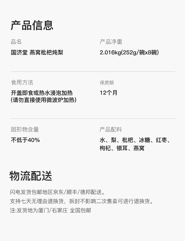 国济堂·大吉大梨燕窝枇杷炖梨礼盒(252*8)