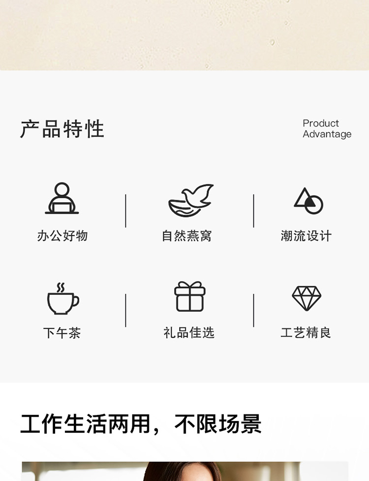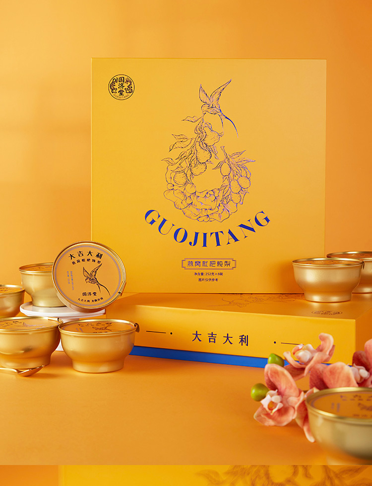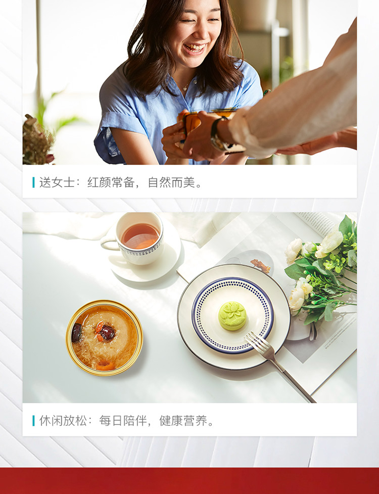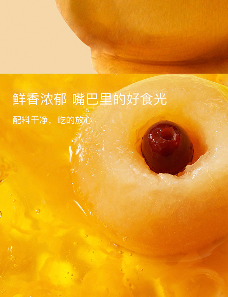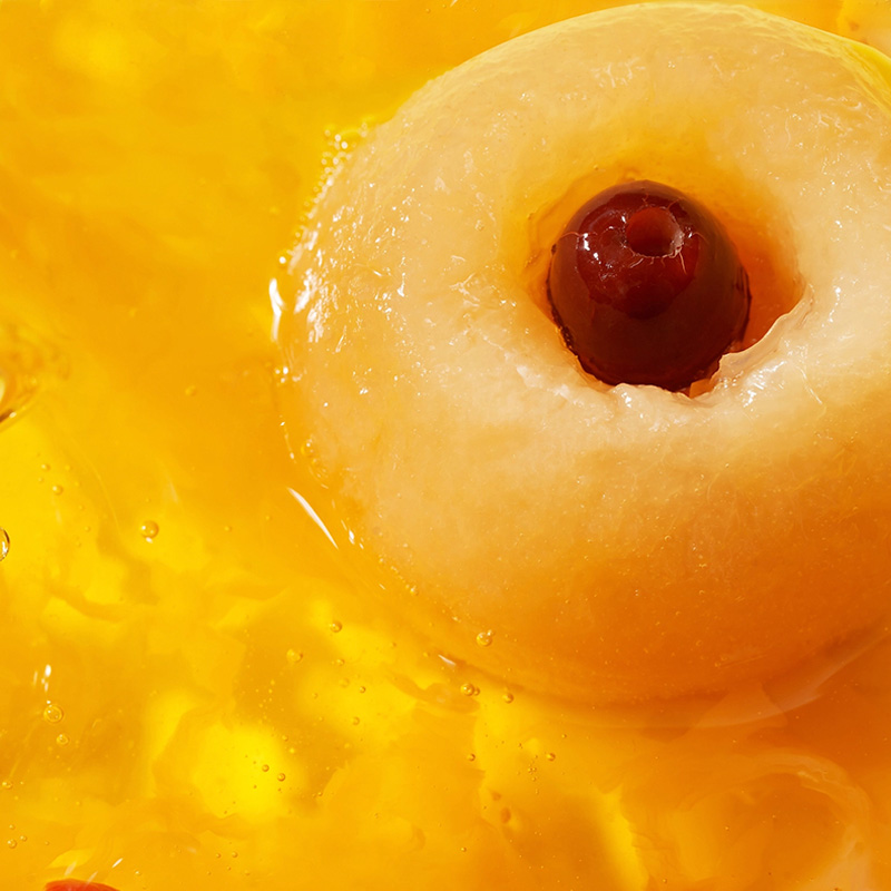 传统金黄色配色,对龙年的吉祥寓意; 炖梨甜水的新搭配, 加入燕窝、枇杷、银耳等滋补好物, 增强润燥; 口感清甜软糯,满满一碗补充能量。 一盒8碗, 配料纯净无添加,坚持纯粹品质。