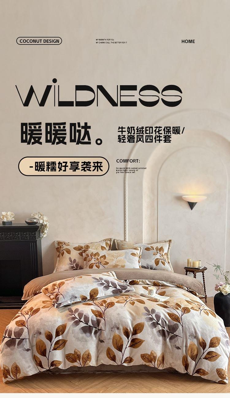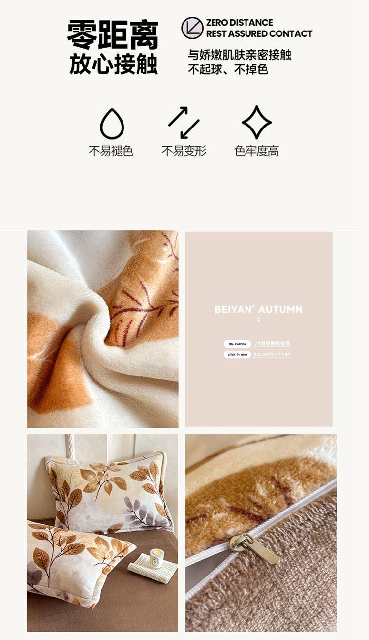 1:软糯牛奶绒牛奶绒面料绒毛纤长,轻盈贴身细密温暖具备透气的能力 温暖不闷汗 2:摸上去就感觉软软舒适的床上用品是自带好感的居家好物 3:绒面细腻温暖(一触即暖就能感知) 4:尺寸:被套 200*230cm*1 床单 230*250cm*1 枕套 48*74cm*2 包装 彩盒
