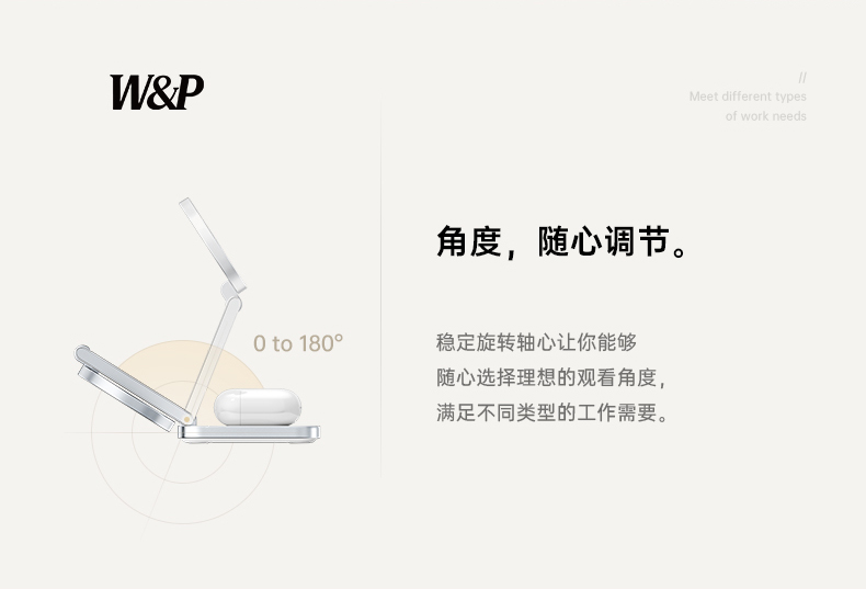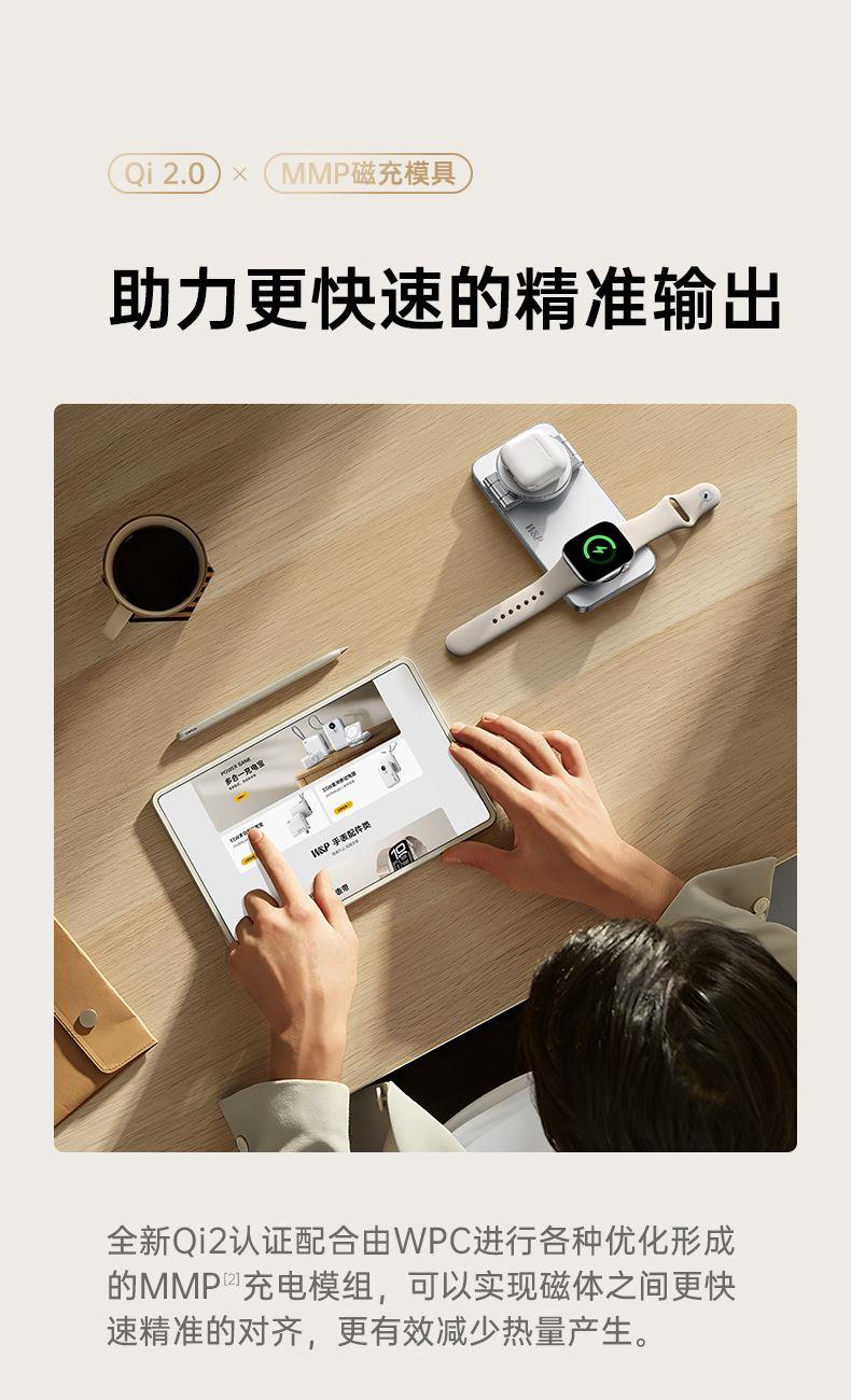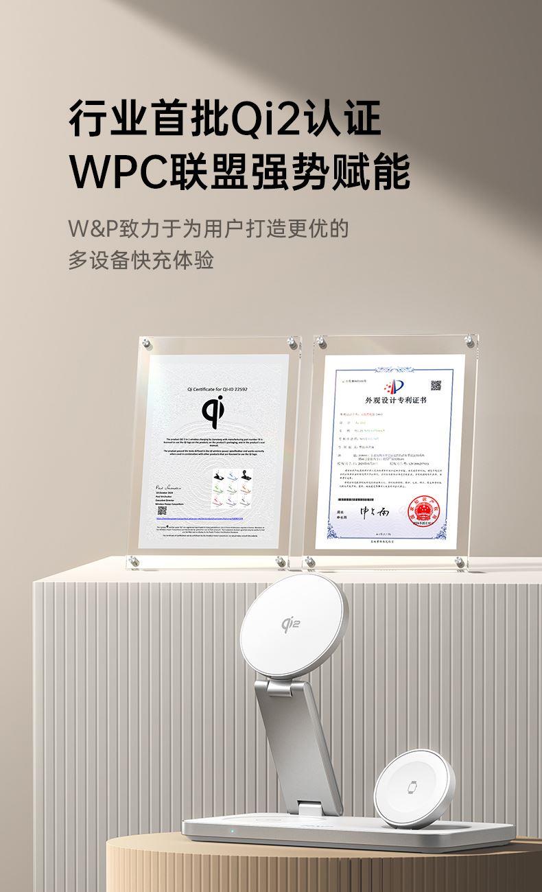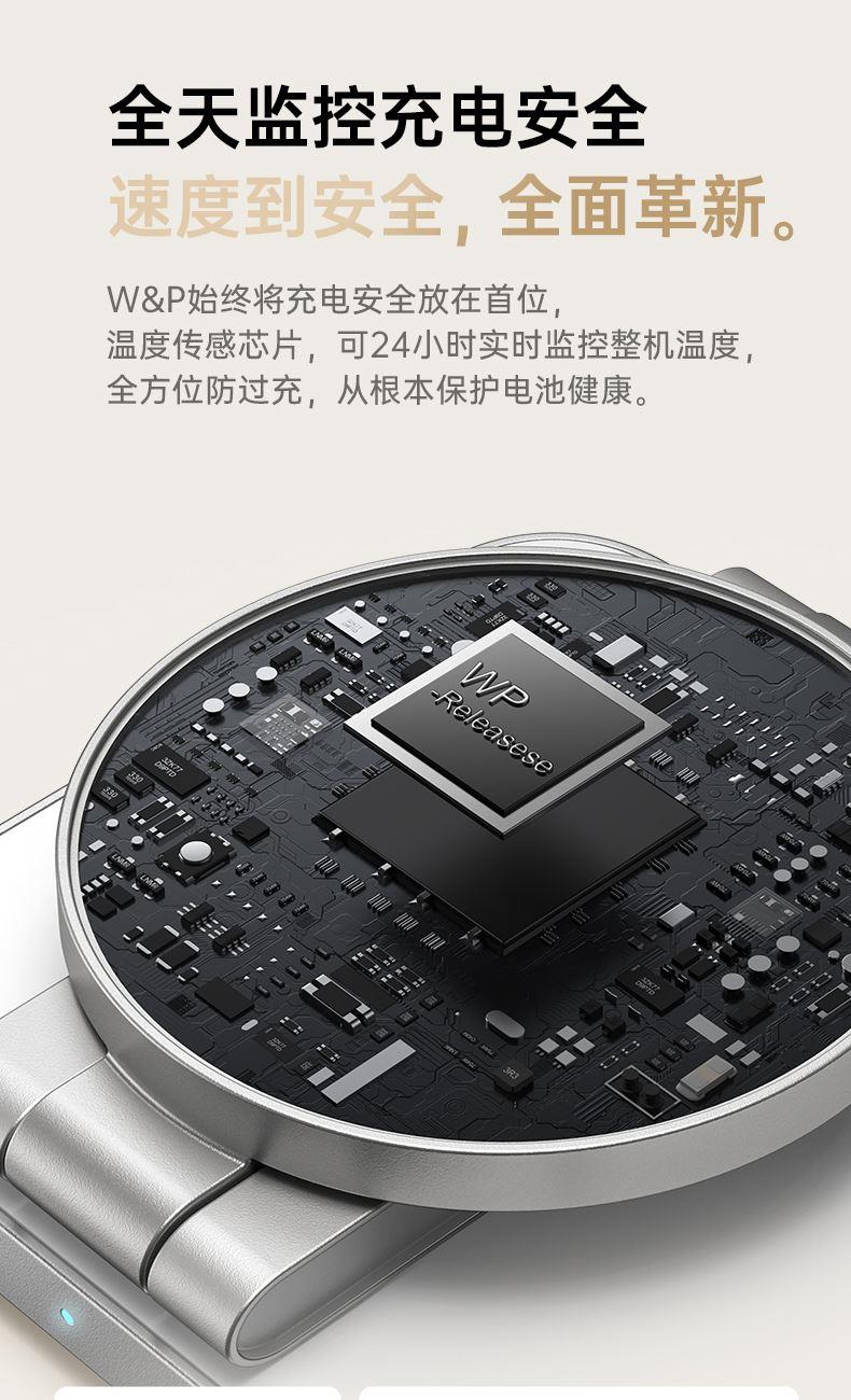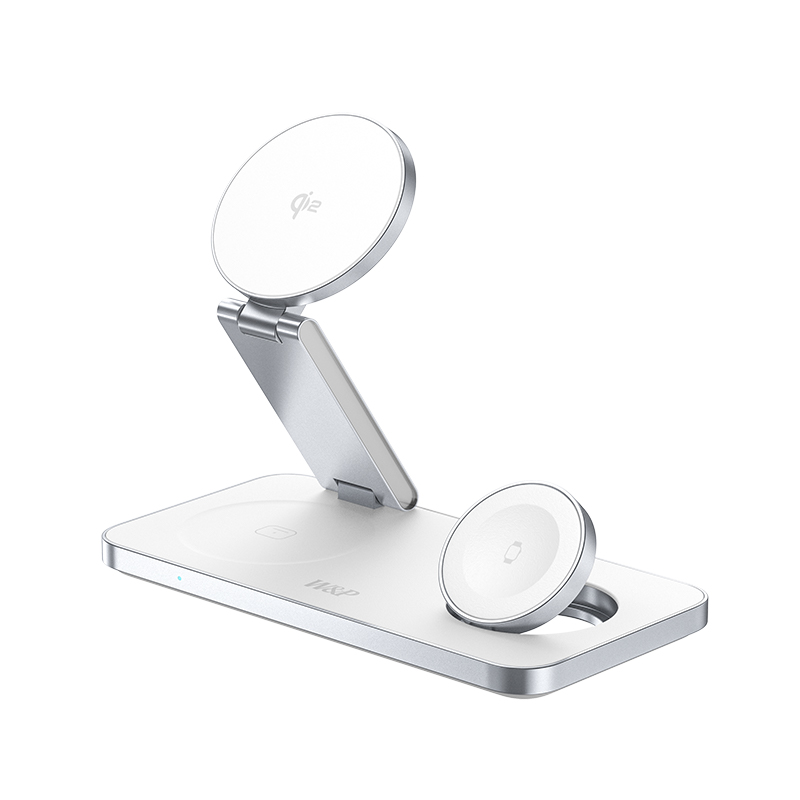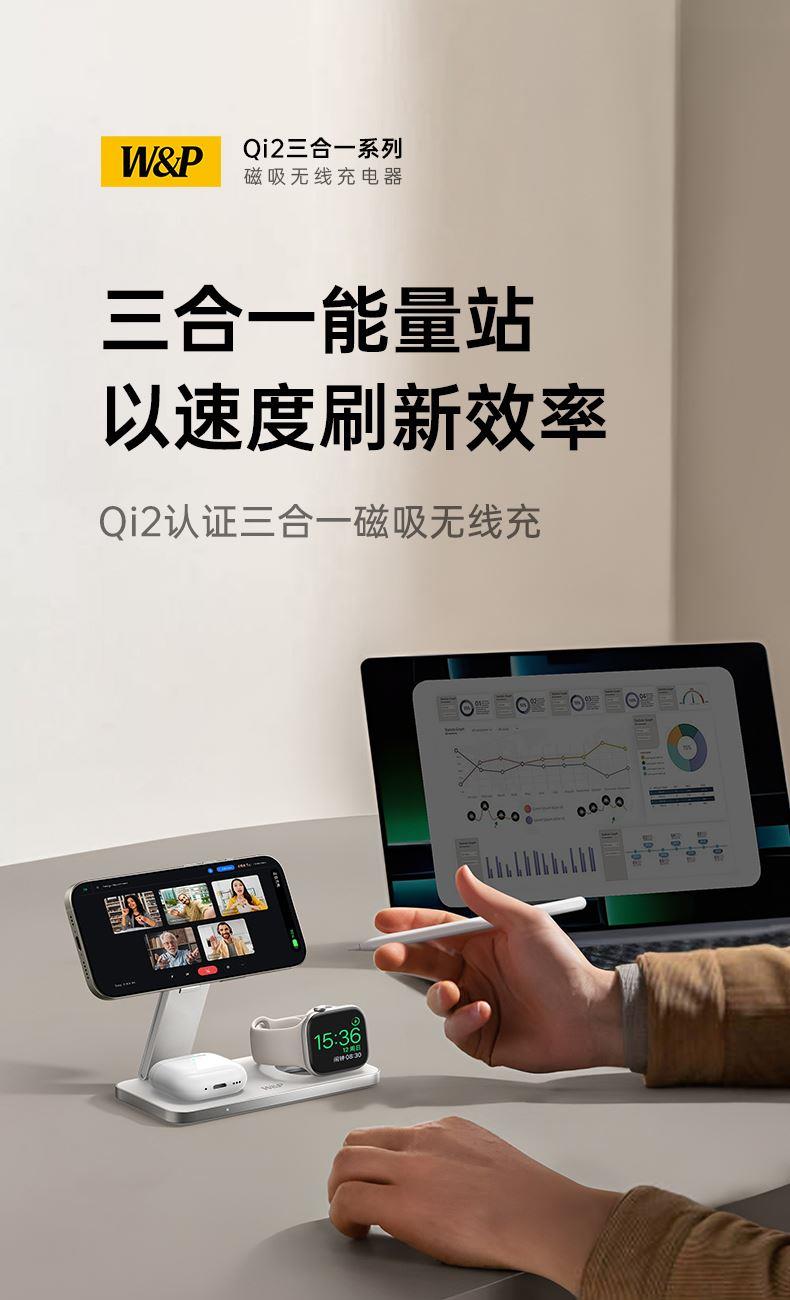 15W无线充电 同时为手机/苹果手表/耳机三部设备充电 小巧便携折叠设计 可升降支架,提高手机充电角度