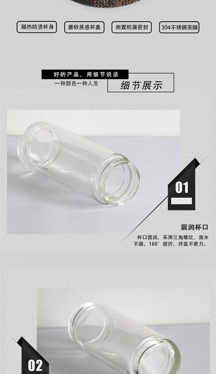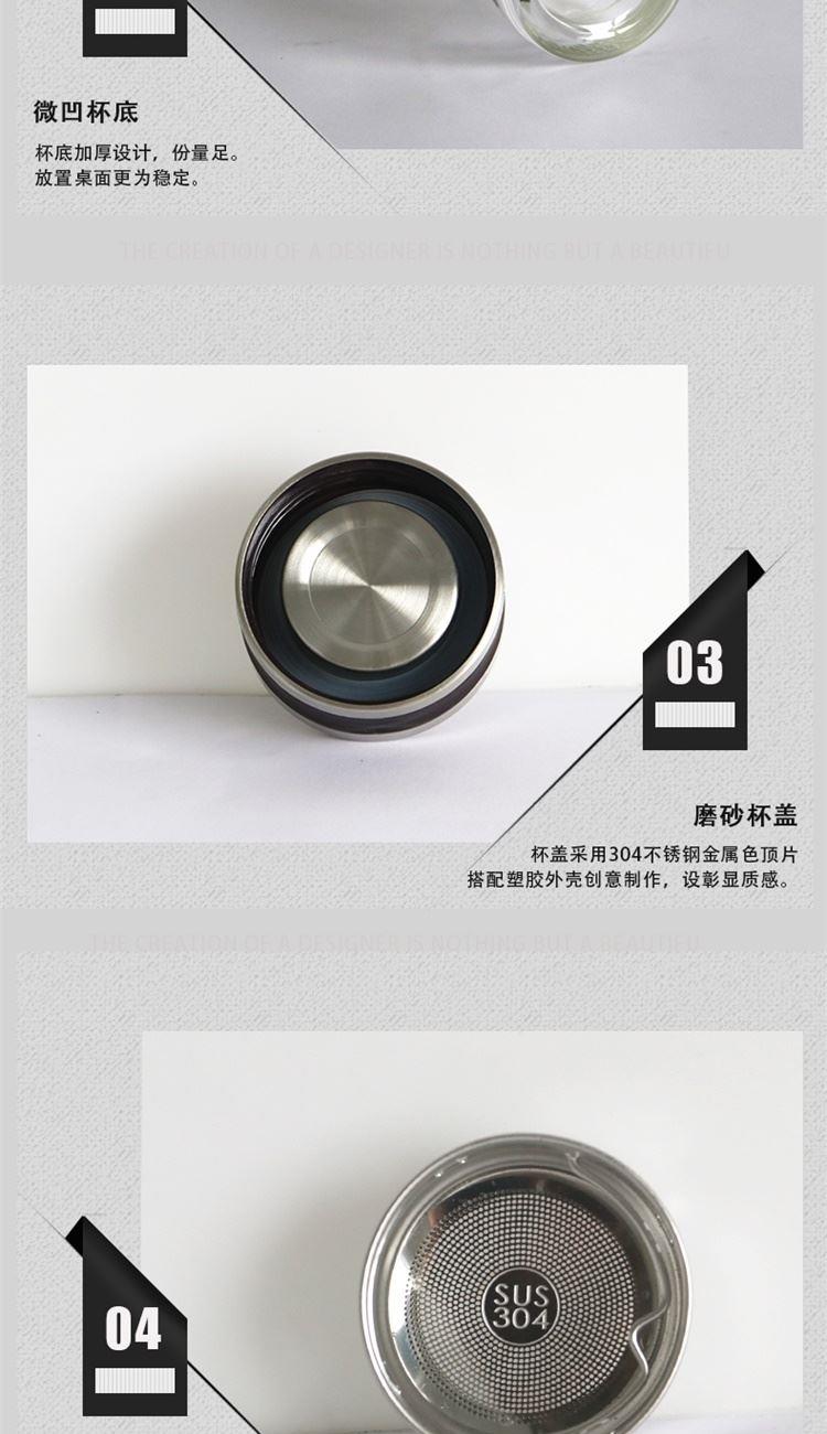 容量:300ml材质:杯体--高硼硅玻璃 、杯盖--PP密封圈--硅胶树脂、滤网-304不锈钢 包装方式:彩盒包装 优势:高品质,低价位,样品支持,前端服务体系完善,售后无忧