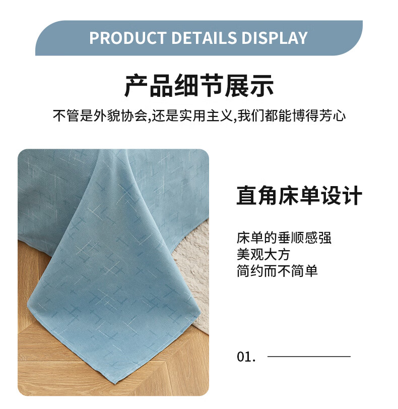 被套:200*230cm 床单:230*245cm 枕套:48*74cm*2 面料:聚酯纤维 执行标准:GB/T22796-2021 安全类别:GB18401-2010 B类 1新型环保浆料活性印染,不褪色,不缩水,其生态环保理念在很大程度上满足了消费者对床品舒适度的高要。 2.手感柔软,舒适质感丰厚,而且有厚重感,容易打理。整体套件,色彩丰富自然,阵线细致密实,错落有序,更显档次。