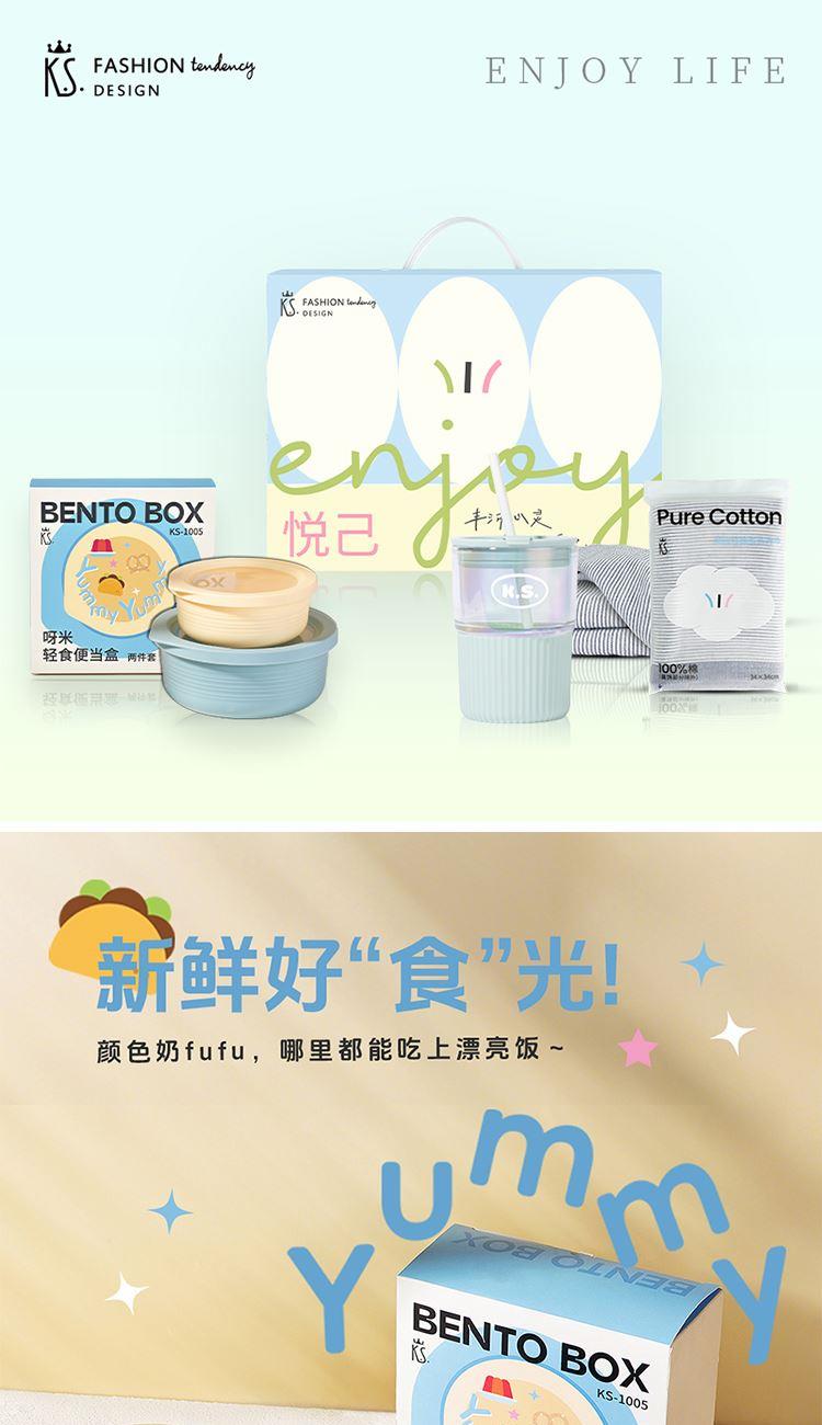 礼盒以悦己为主题,用清新明快的棉花插画造型塑造了温暖的调性。更适合员工福利、活动营销等。 礼盒包含轻食便当盒两件套、打咖杯、纯棉方巾 礼盒、礼袋、内容物件上均可实现中小批量成品订制,全套订制方案输出,为企业宣传添砖助力。 以下代发价不含偏远地区:黑龙江、吉林、内蒙古、青海、云南、宁夏、海南、贵州、甘肃、新疆,(西藏地区按官网核价)