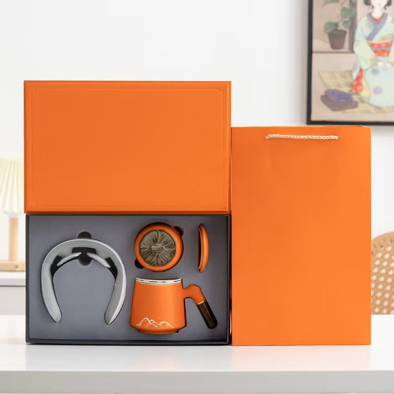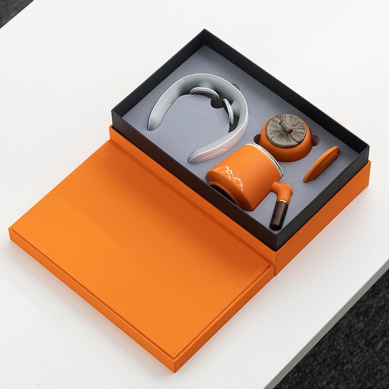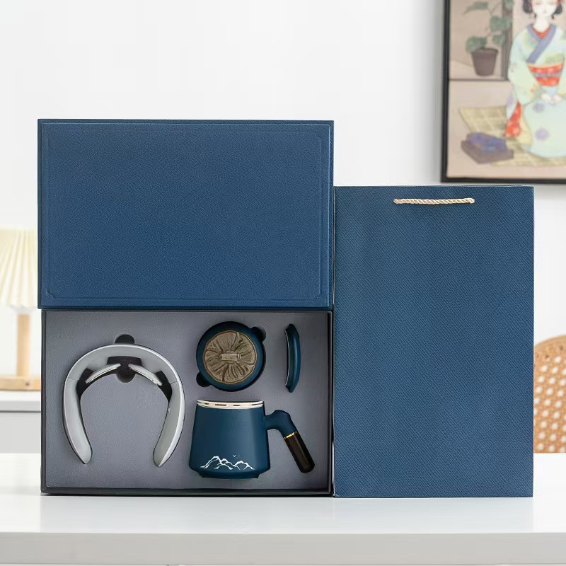 配 制: 1办公杯 1颈椎仪 1茶叶罐 1锦盒 手提袋 规格: 办公杯14.5*10.4cm 礼盒38.2*11cm 工艺:商务实用性礼品,上班族刚需产品。粗陶办公杯,带茶漏,颈椎按摩仪,低频脉冲技术,缓解颈椎疼痛。