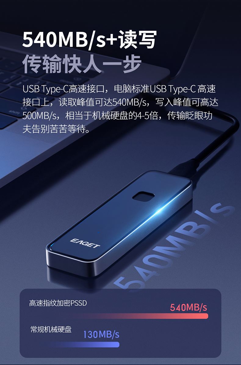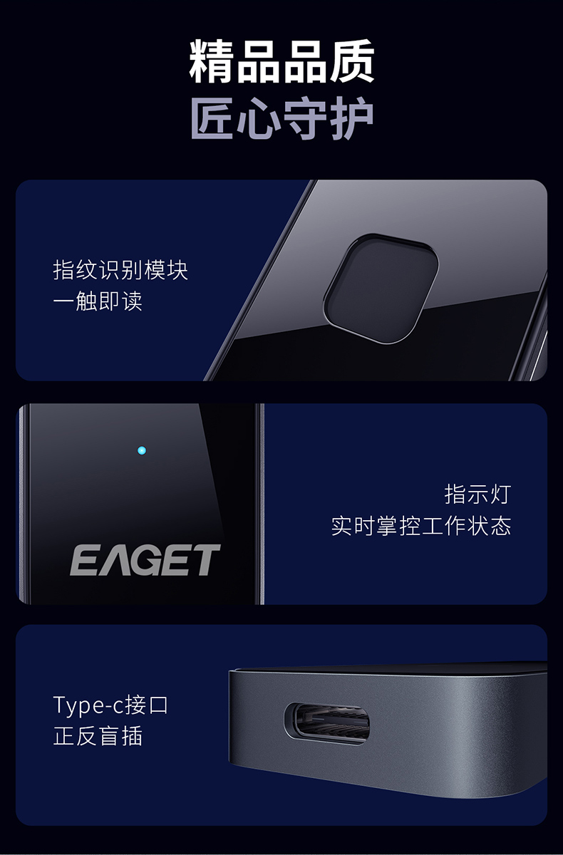 (EAGET)忆捷FM2指纹识别移动固态硬盘防震耐用2TB