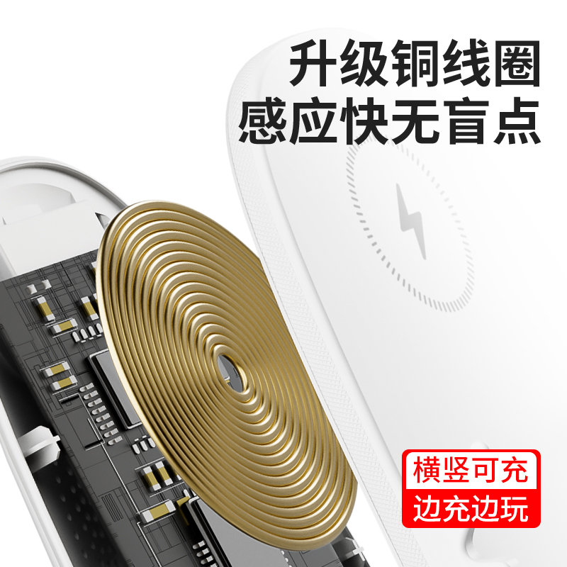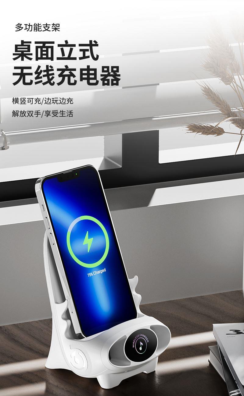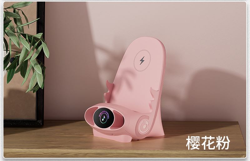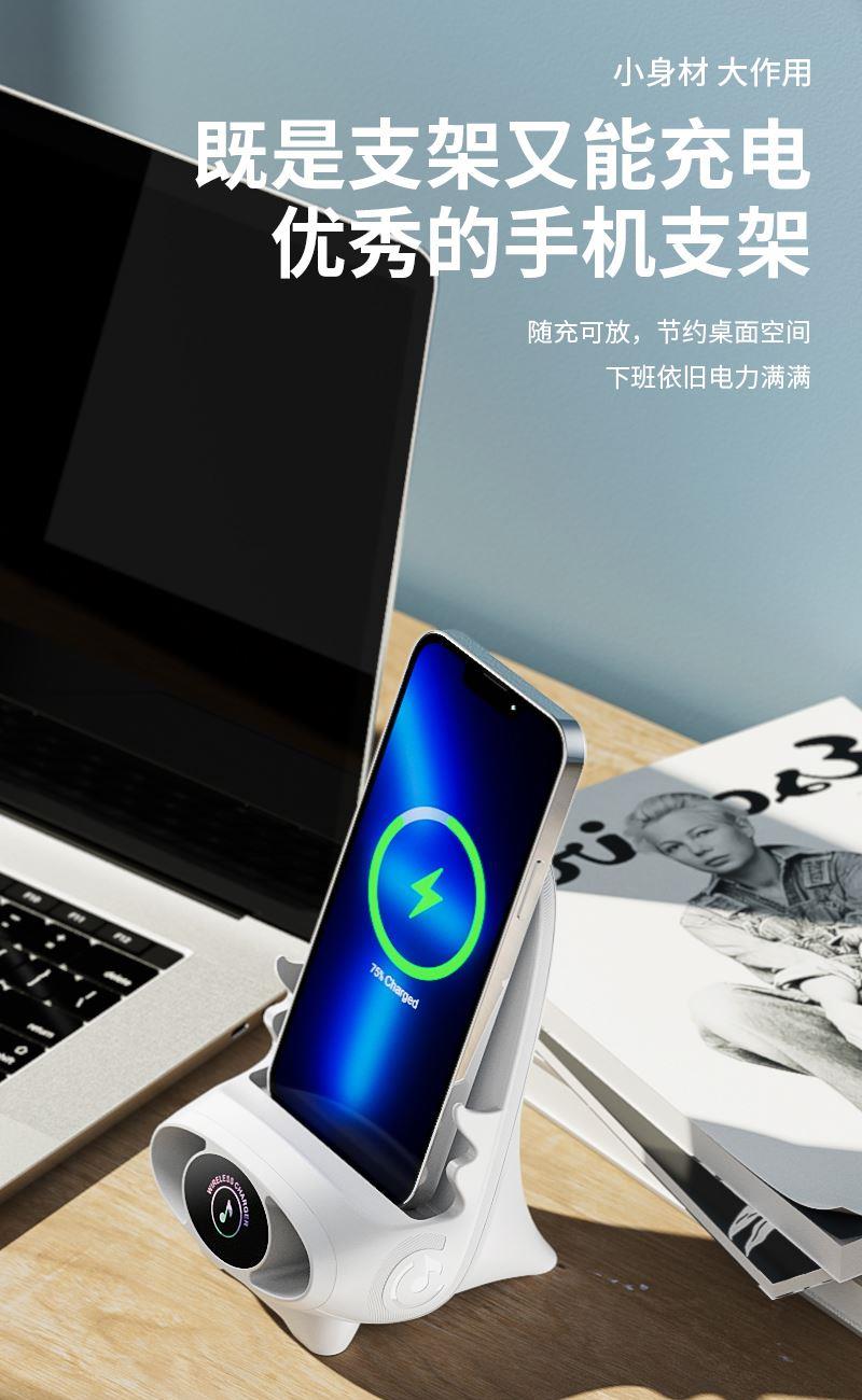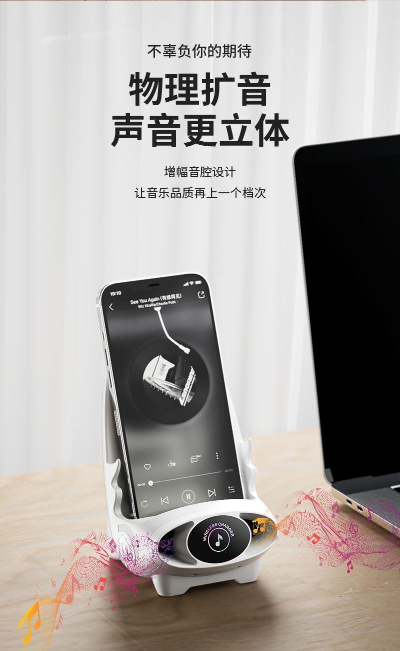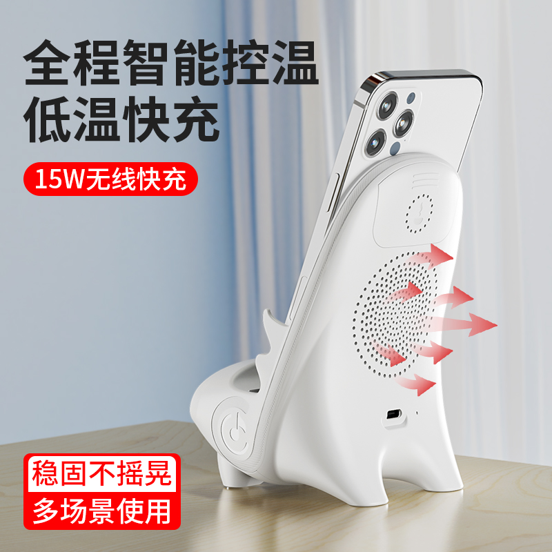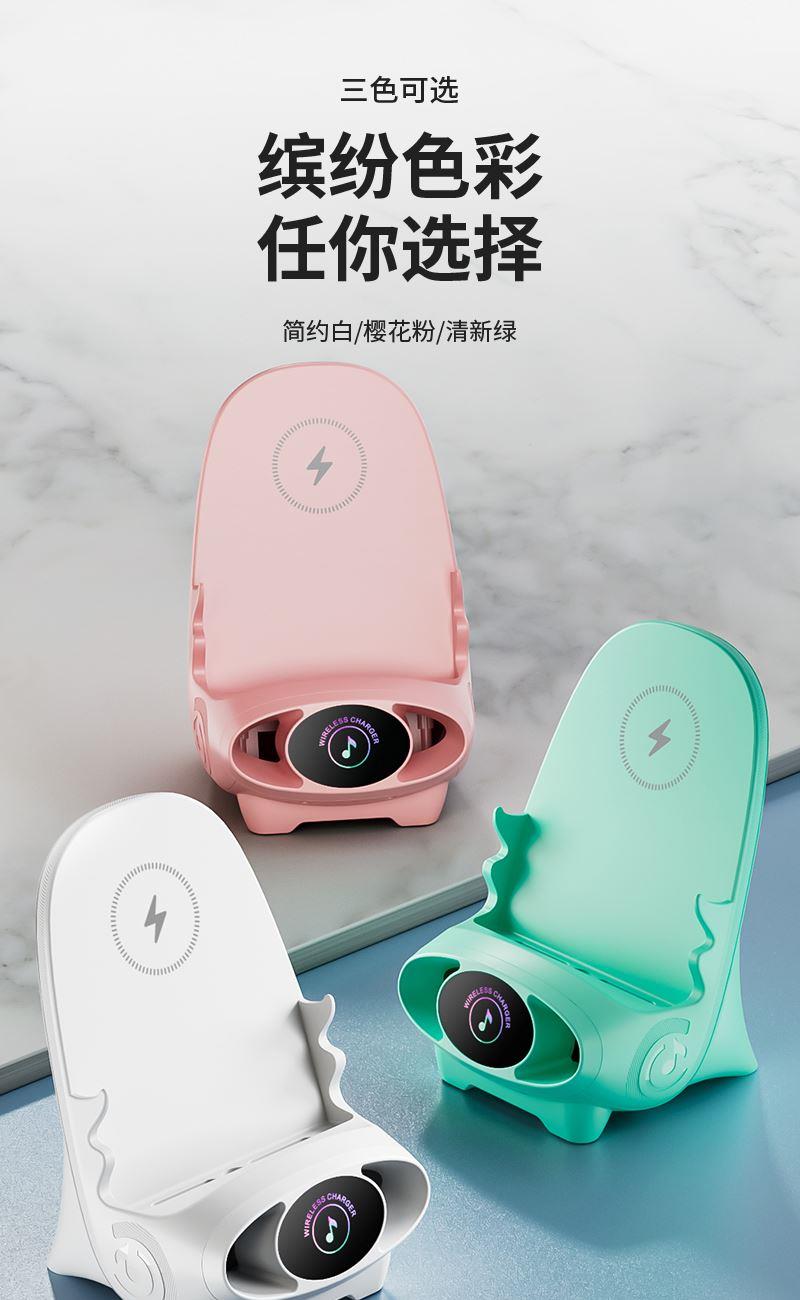 产品规格:9.4*9.57*13.6.cm 材 质:ABS+PC+金属支架+电子元件 输出功率:5W-15W自动识别 电 流:5V/2A-9V/1.67A 颜 色:白色 粉色 蓝色 产品净重:135g 适用机型:支持无线充的手机 产品特点 双重低温保护 加强散热 三角稳固原理 防晃不倾倒 升级纯铜线圈 感应快无盲点 支持双模式充电 15W无线快充+磁吸充 既是支架也能充电 支持4.5-11英寸手机平板设备
