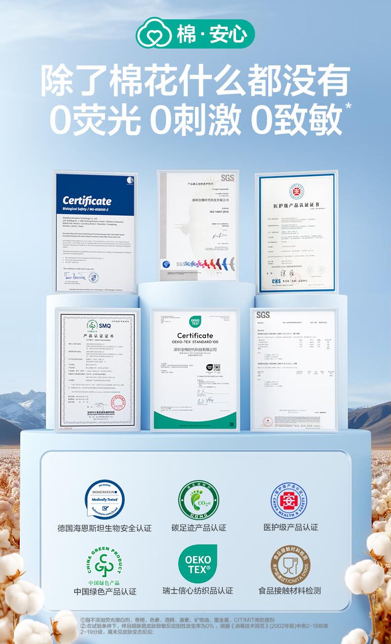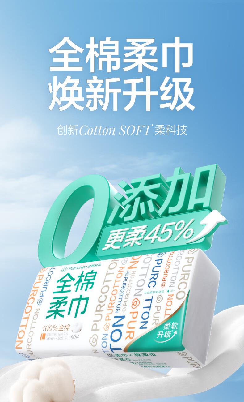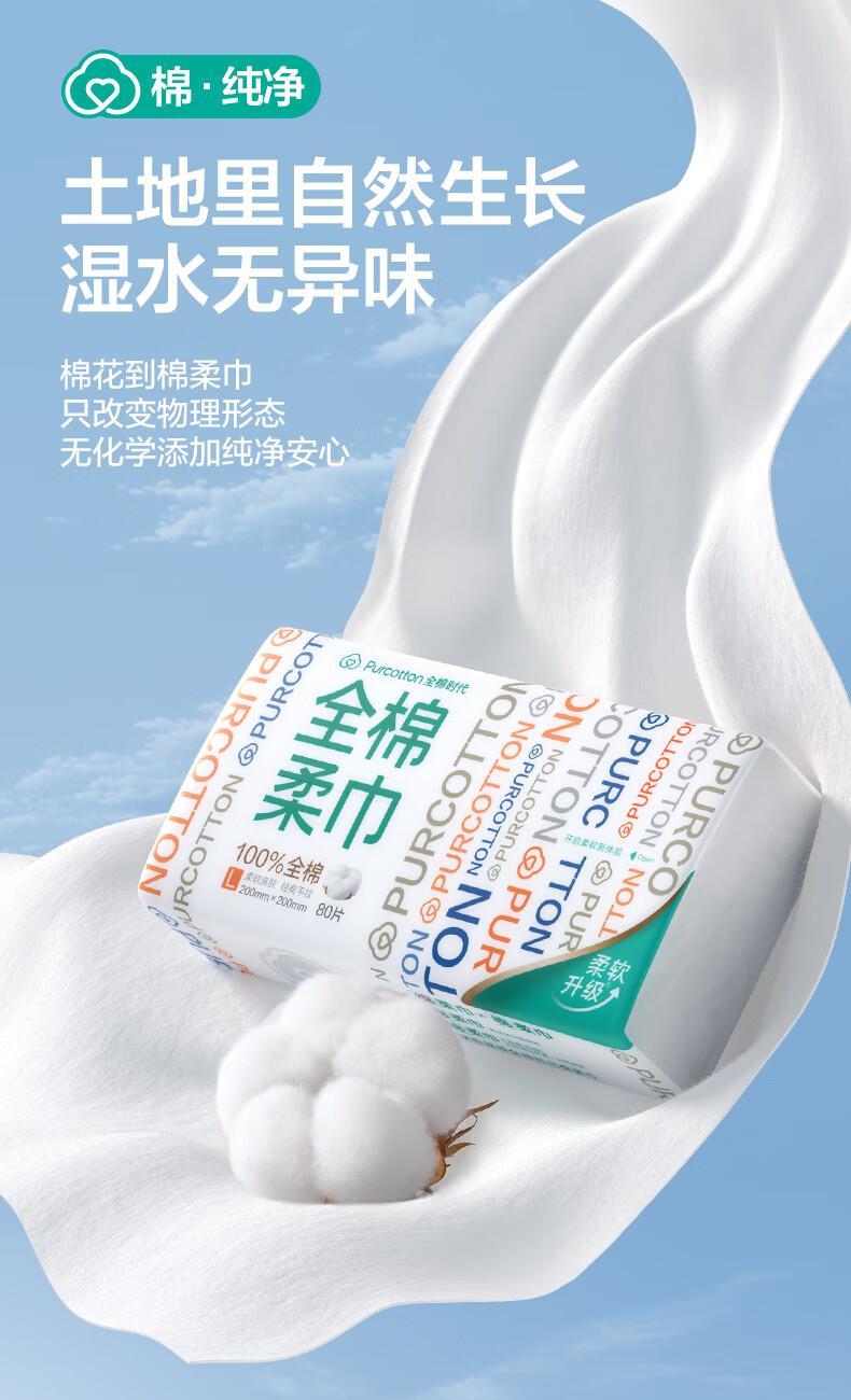 全棉时代纯棉柔巾45GSM,20×20CM80片/包3包/组